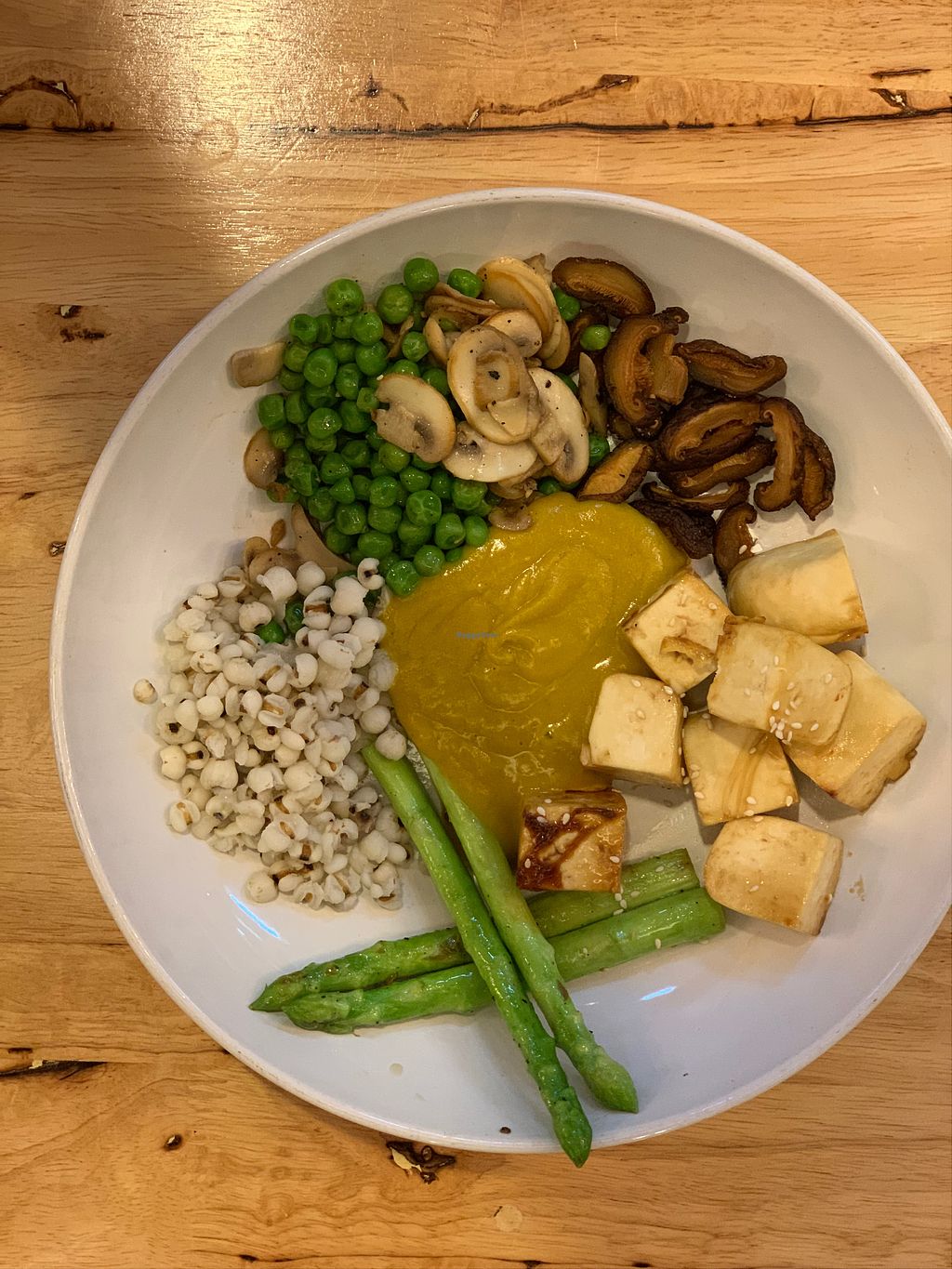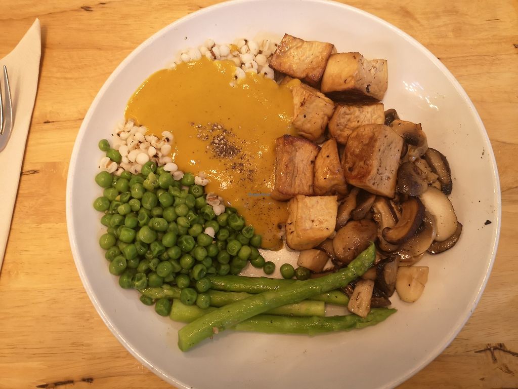 Tofu Triyaki Salad with pumpkin cream sauce - sooo good