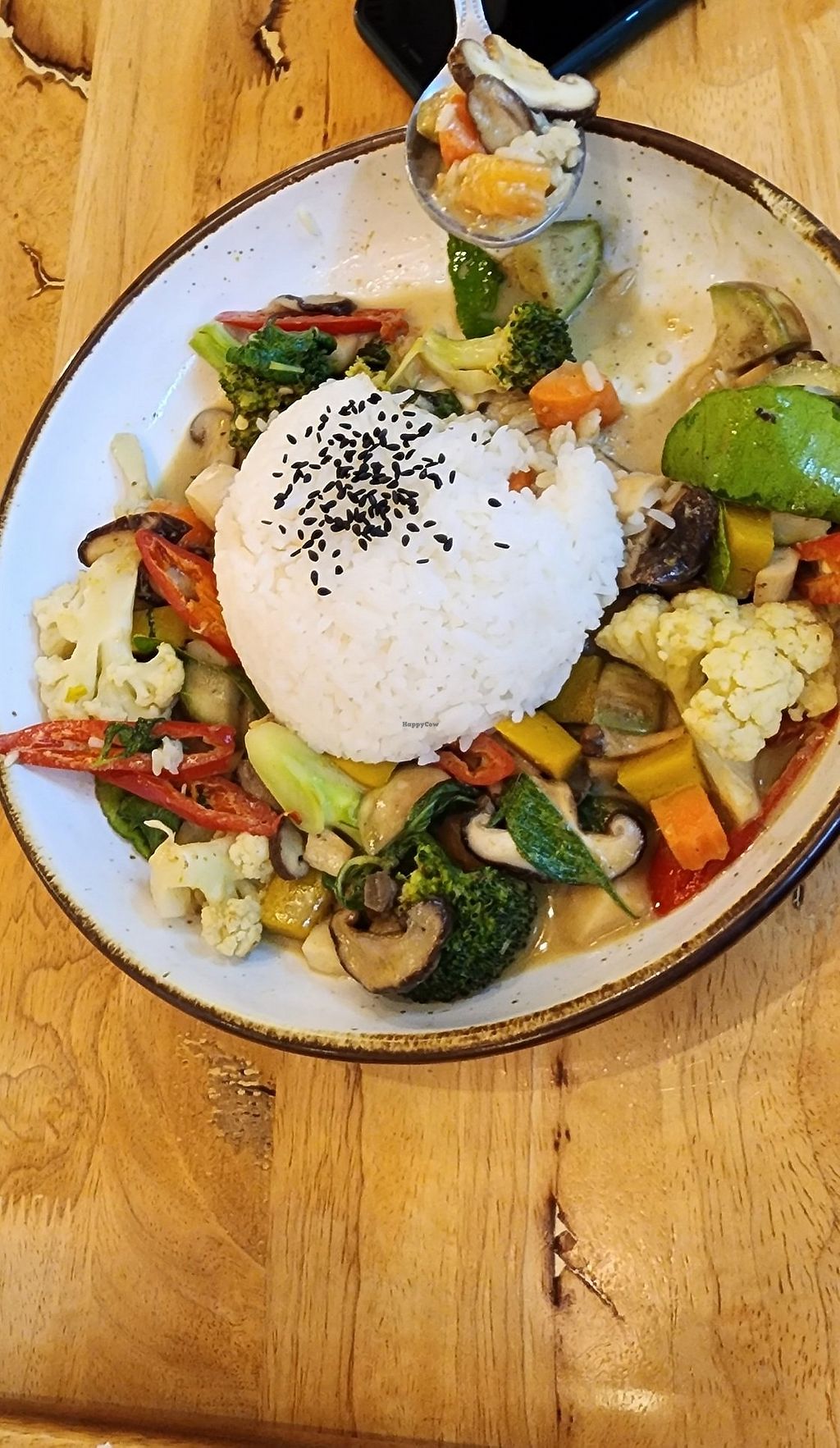 Stir-fried green curry with rice, 120 baht