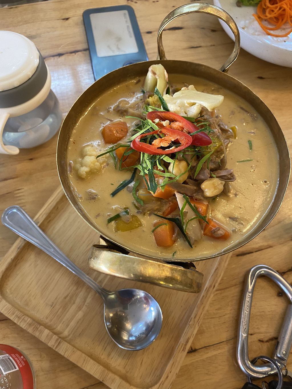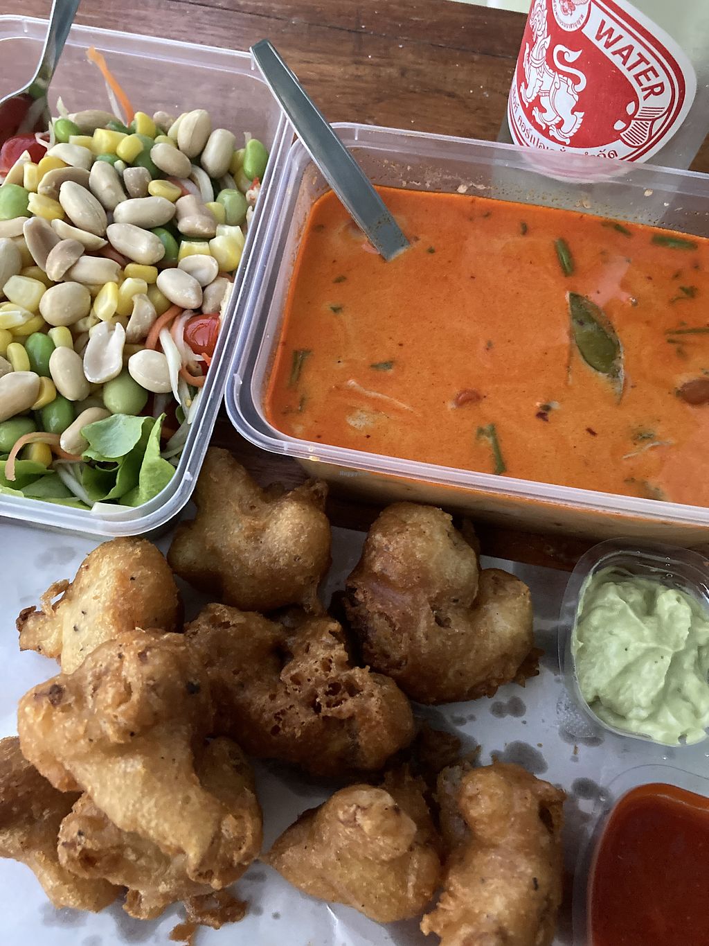 Best food I’ve eaten in Hua Hin! Som tam, tom yum soup and spicy red c…