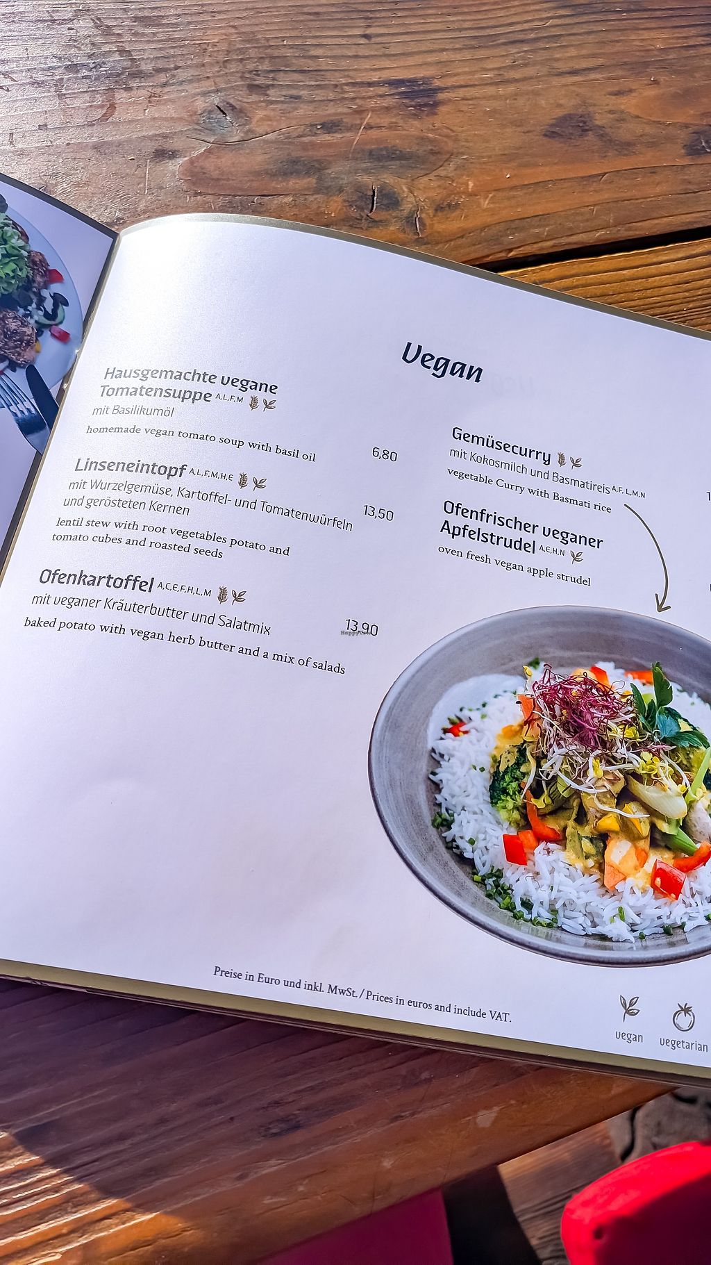 One of few ski huts with a special page for vegan food in the menu.