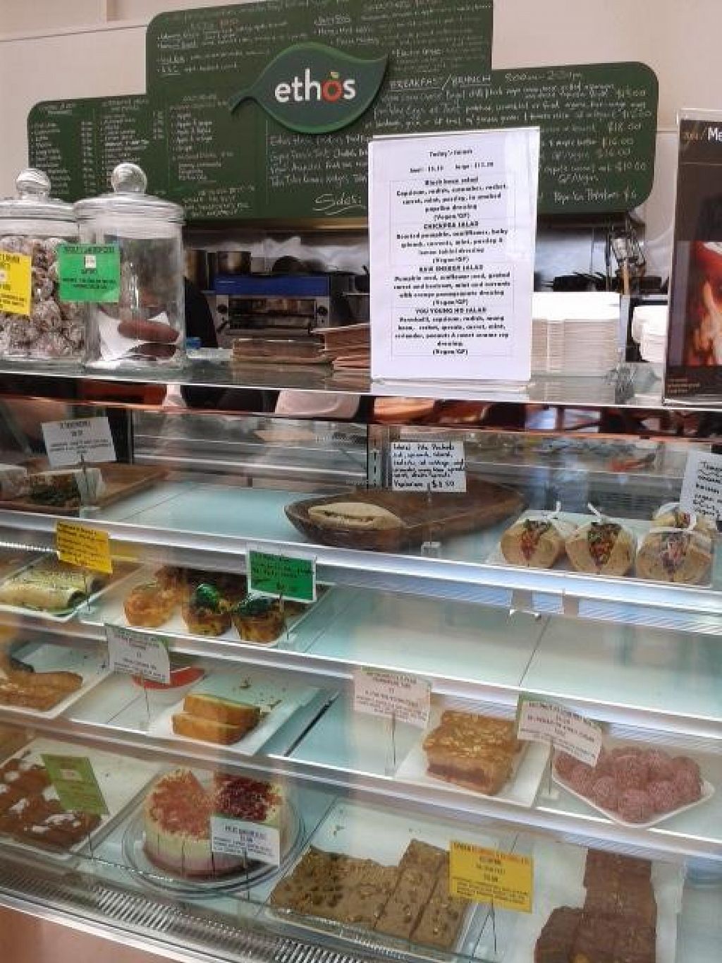 I had lunch here with a vegan and a vegetarian. Ethos Cafe includes a salad bar, hot dishes and a delectable range of cakes and slices. Everything is vegetarian and organic and nearly everything is vegan. The menu is varied and large. There is plenty of seating. The cafe is located in a large building that also includes an organic bakery and large organic supermarket, probably the largest organic vegetarian venue in New Zealand.