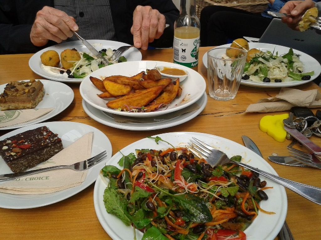 Had the cabinet salads and some sweet treats with an omnivore fried for lunch, we both loved all the food. Really light and spacious premises with lots of seating and interesting art on the walls. Nice to see some food plants growing outside too. The vegan cakes were really good and the salads were great value.