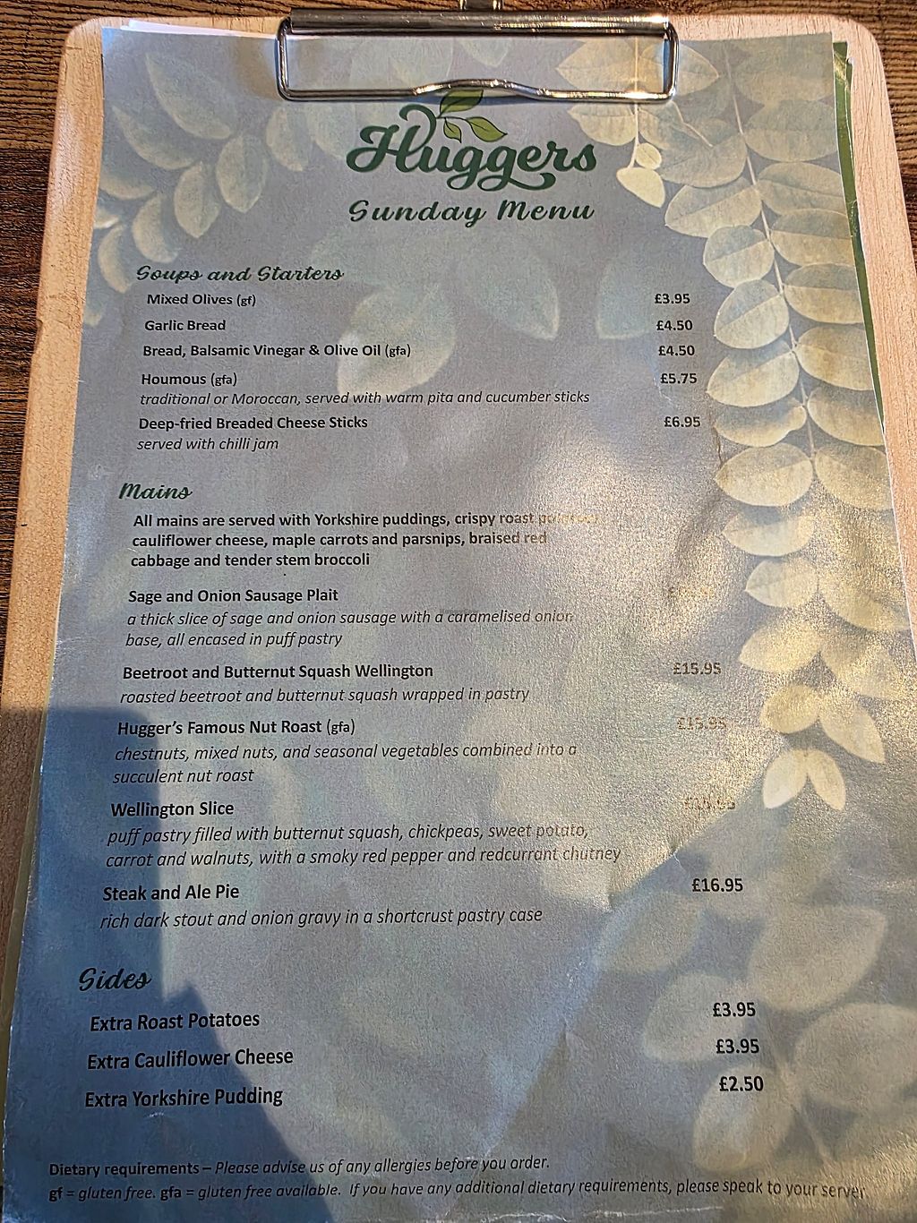 Sunday Menu