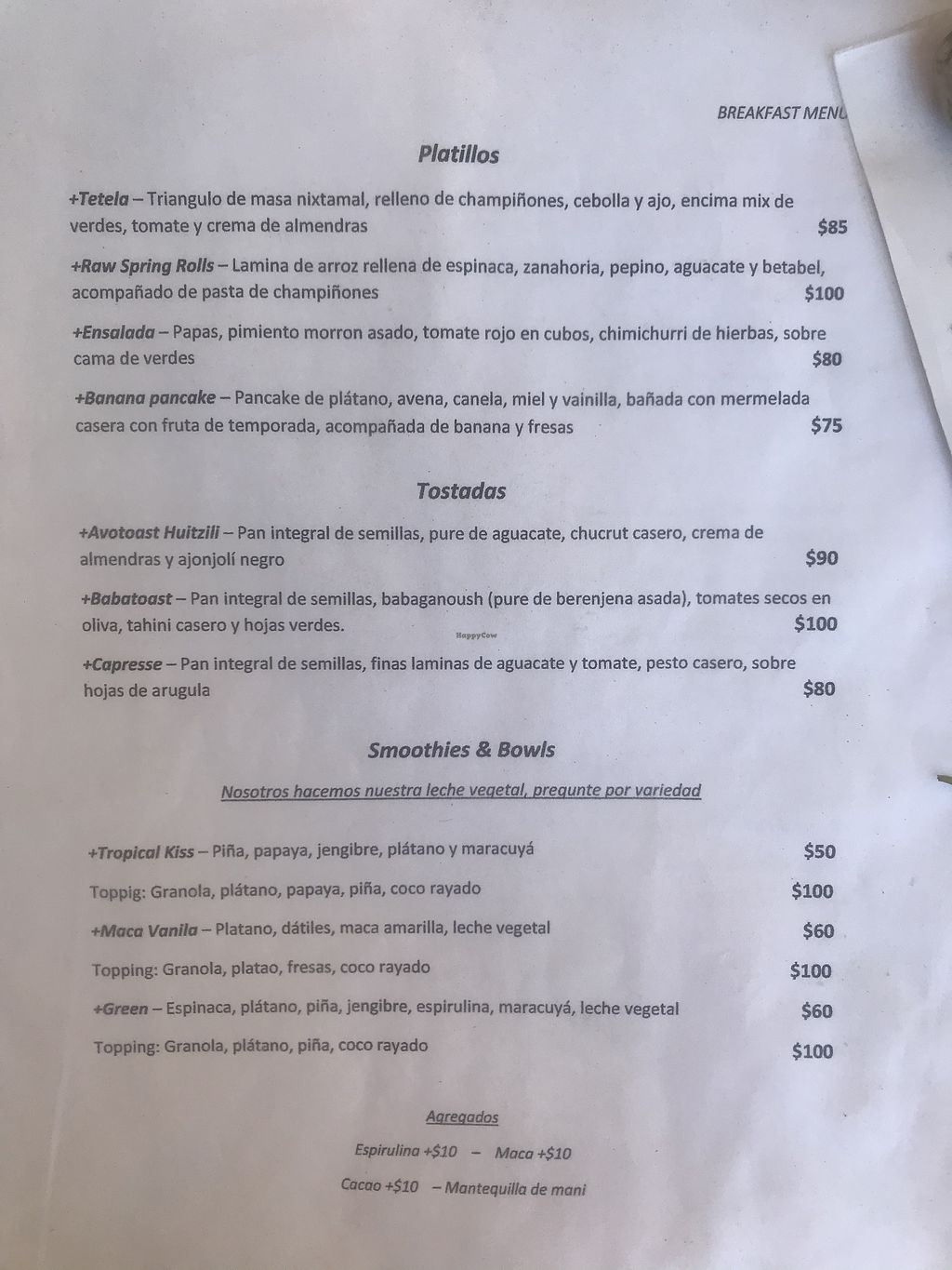 I came here for dinner after a lovely day on the beach. I’m glad I went. The outdoor patio is really nice and has a rustic, beachy feel. There’s a few traditional tables and chairs, but about an equal about of low-to-the-ground tables and benches/cushions. Sitting so low is a bit awkward, but it makes for an intimate atmosphere. The menu is entirely vegan and features a number of filling options. I had a starter, a main and a dessert and paid about $250 MXN. Definitely more expensive than other restaurants in the area, but you’re getting good food. I loved the passion fruit cake - make sure you get it.