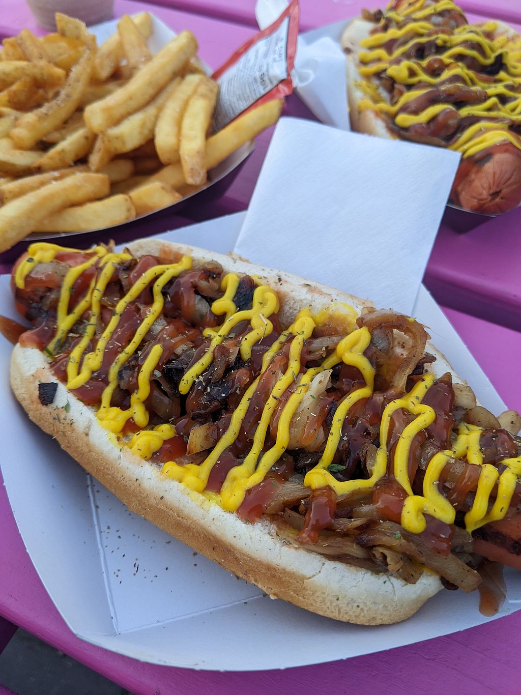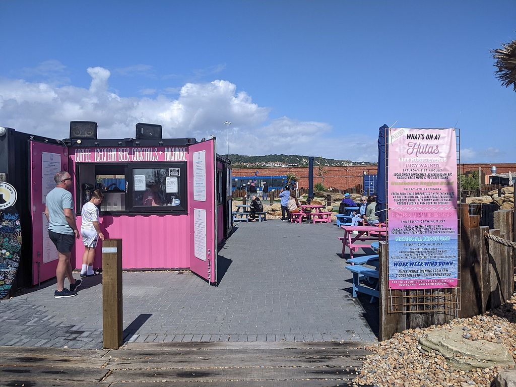 Nice little souped up shipping container kitchen right on the seafront with views across the channel. It's outdoor seating only so keep an eye on the weather before heading down! We got caught in torrential rain and sheltered at the side of the building. The colourful picnic benches dried very quickly in the sun though, so don't be too put off by classic British summer weather!