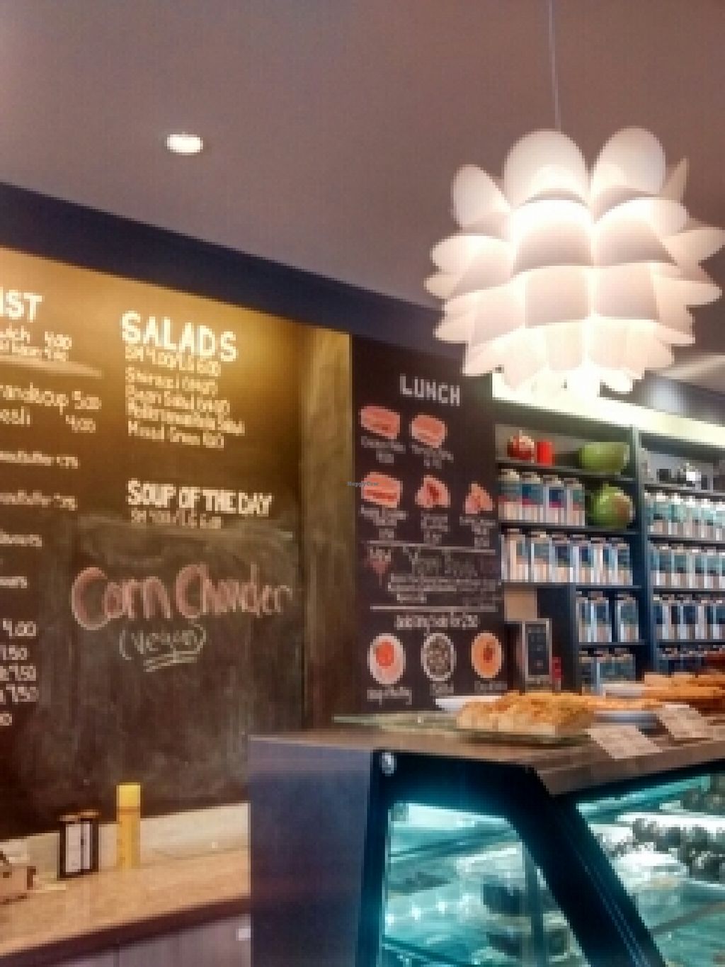 This location is much larger than the other. It's decorated nice and has a great atmosphere. The display cases are jam packed and all vegan options are marked. They have these delicious looking chocolate truffles that I am desperate to try but the food is a bit lacking in the vegan department. They have a spicy vegan wrap and samosas which are virtually identical besides the casing. They do offer all vegan soups as well. Unfortunately, I am a little fussy and not really a soup person nor a fan of Indian food aka curry, so my choices were basically gone. I ended up deciding to try the wrap but didn't like it because of the curry. Hubby took it home to eat later. But honestly, I'd go here just for the vegan gelato. They had 6 vegan choices today and it was hard deciding. I went for the Very Berry Chocolate and my husband got the Banana Peanut Butter. We ended up switching half way through because I didn't like the amount of seeds in mine but the chocolate part was incredible. So, I'd recommend this place for dessert but not so much for the food itself. It's also pretty expensive for what you get. Twenty-eight dollars for 2 wraps, a soup and 2 root beer.