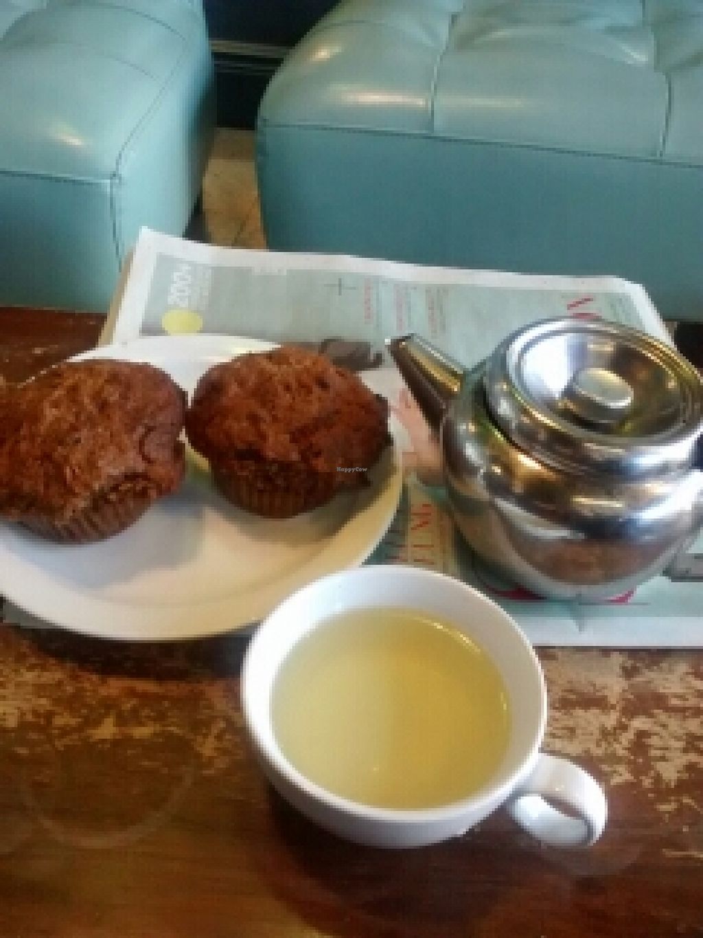 Serves meat, vegan options available. Tea room and cafe. Has vegan gelato, energy bars, vegan shakes, wrap, and soups. Reported closed September 2020.