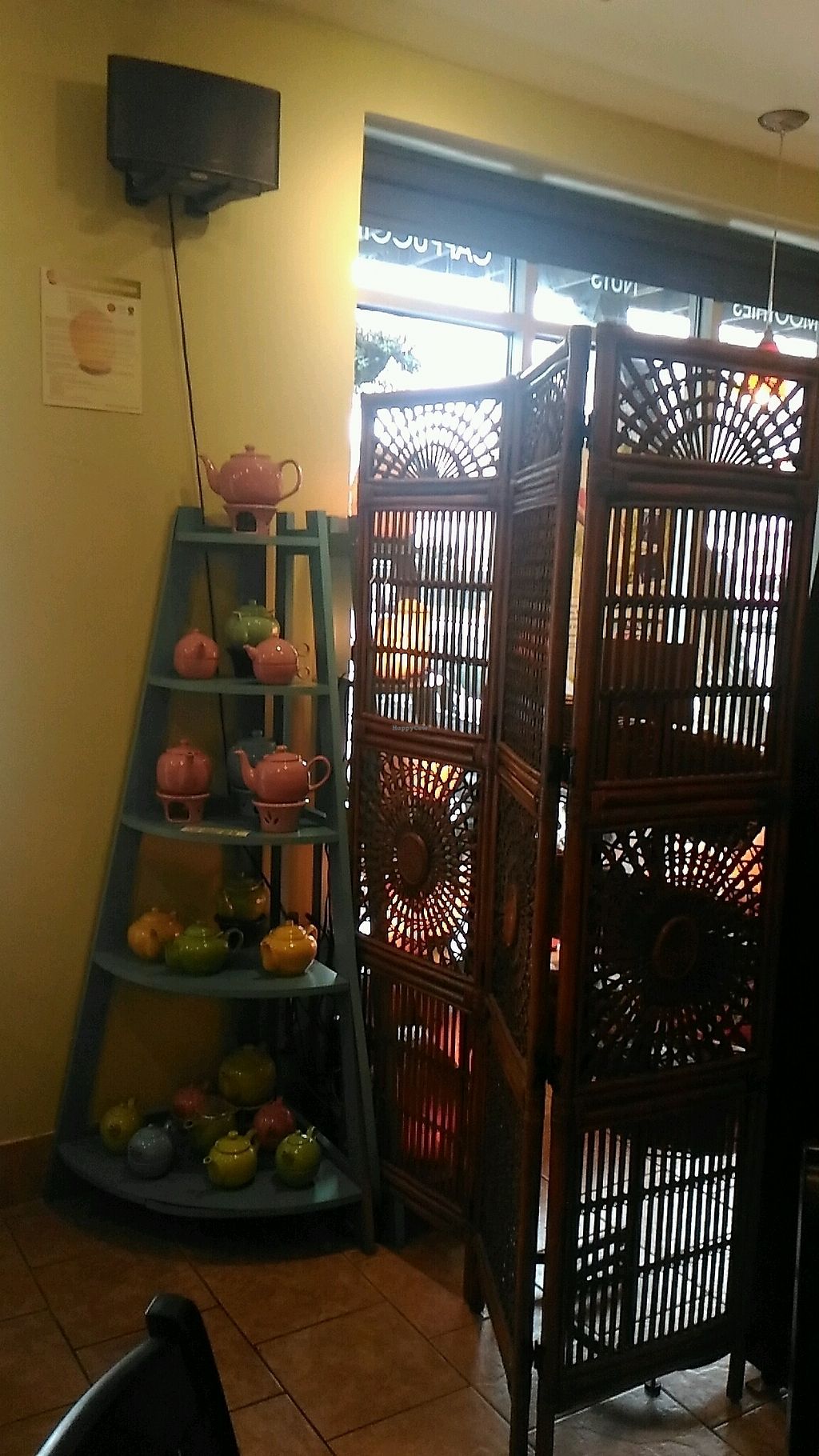 Serves meat, vegan options available. Tea room and cafe. Has vegan gelato, energy bars, vegan shakes, wrap, and soups. Reported closed, Aug 2021.