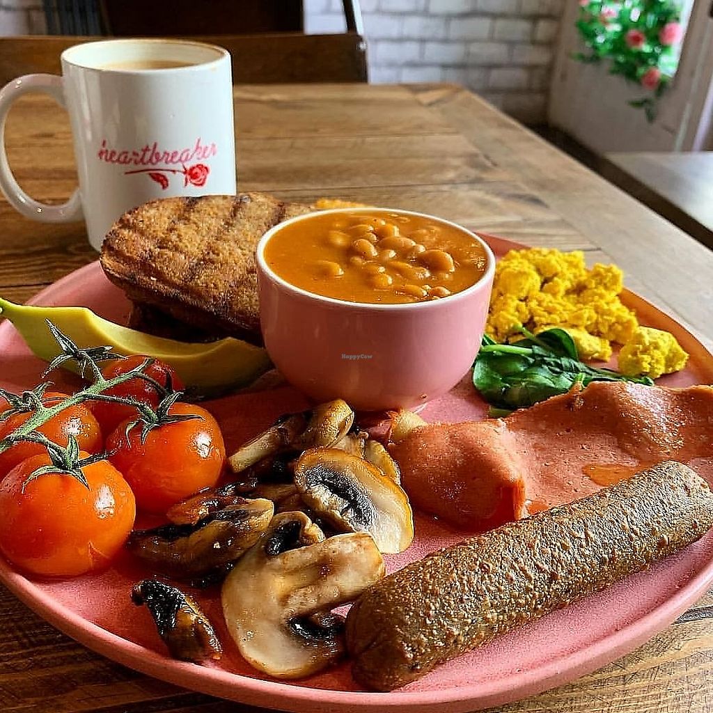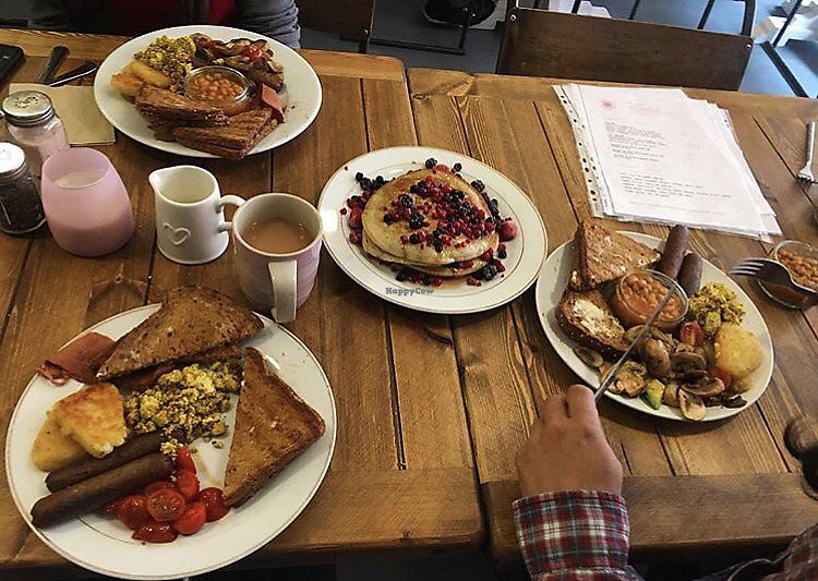 Vegan cafe serving a full breakfast menu consisting of pancakes, full English, avocado on toast, sausage sandwiches, etc. Lunch menu offering jackfruit, bean burgers, kale mac 'n cheese, and a full sandwich and child's menu. Coffee and cakes. Est. 2017. Reported closed January 2021.