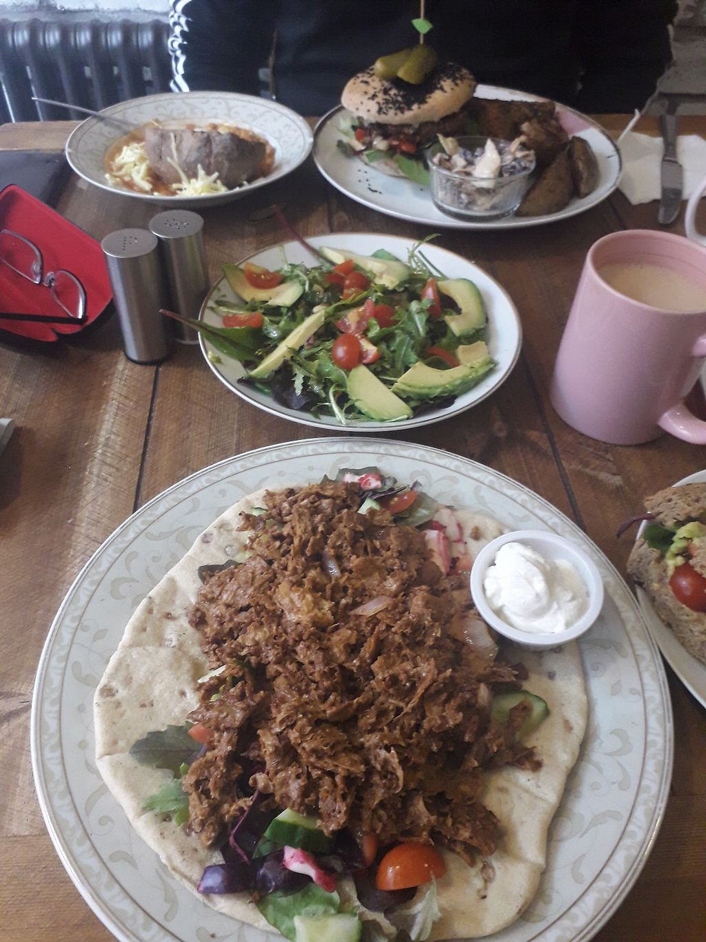 Pros: Great menu, quirky set up, dog friendly, lovely staff, tasty all vegan menu, decaf tea for those with a caffeine intolerance