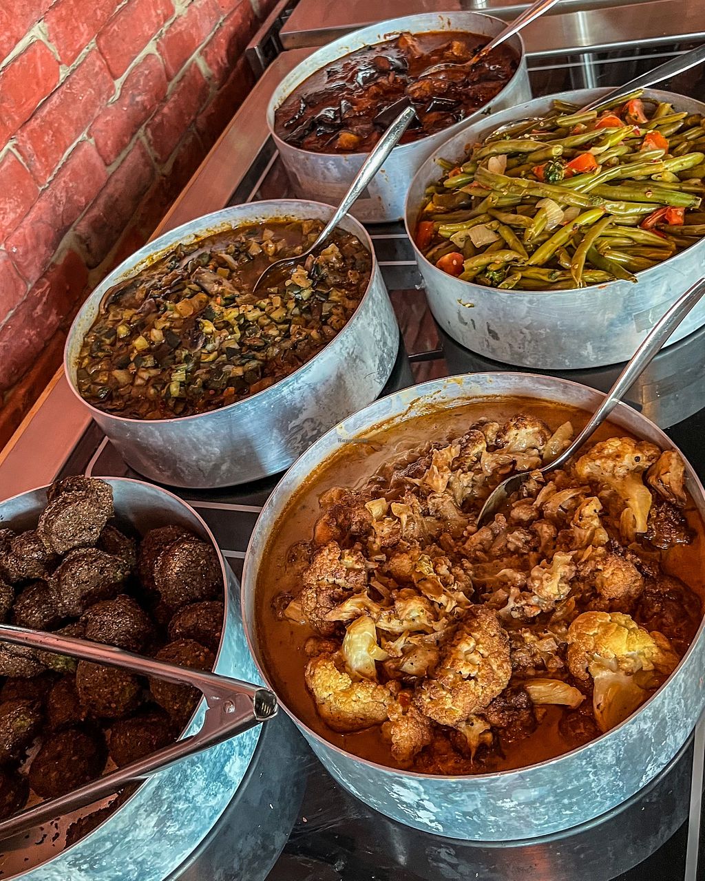 Our new favorite lunch place! Amazing flavors, great selection, friendly staff and almost everything is vegan. Only few items had milk and they were clearly marked. The pictures are not the best but gives some insights.