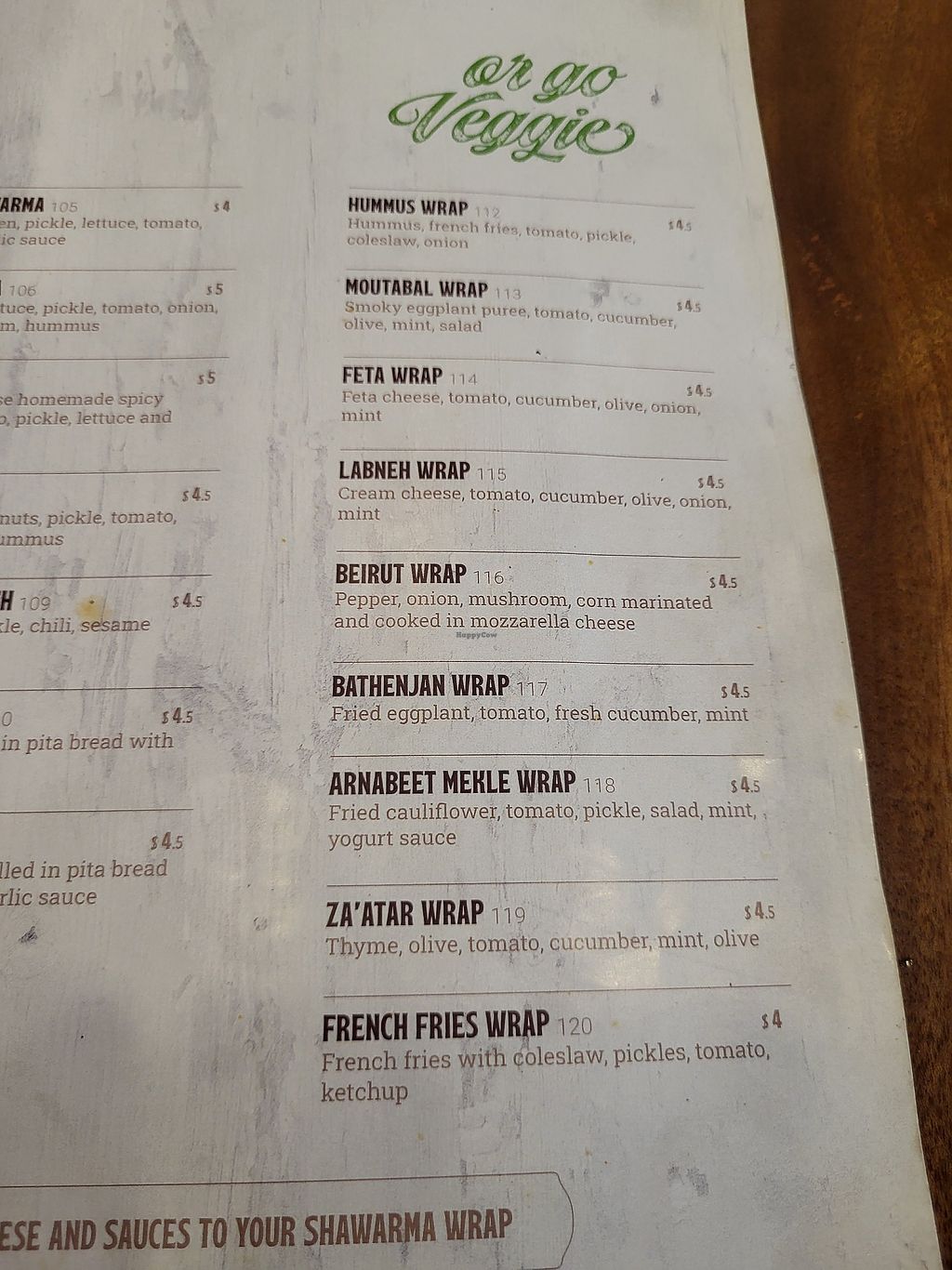 I had the vegan falafel wrap which was great for $3.50. friendly staff spoke a good amount of English too