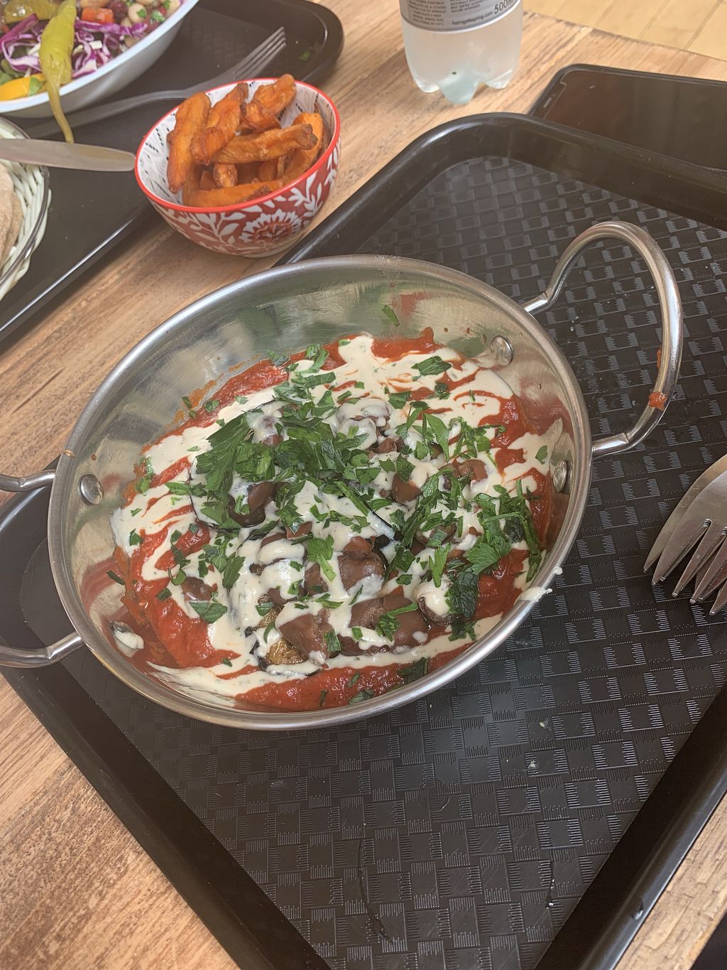 Humpit salad and sweet potato fries