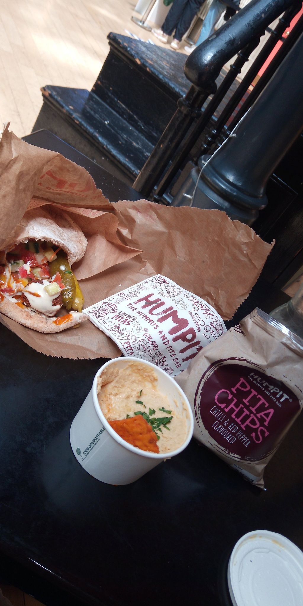 'Half and half' pita, half houmous, and half falafel, with a generous …