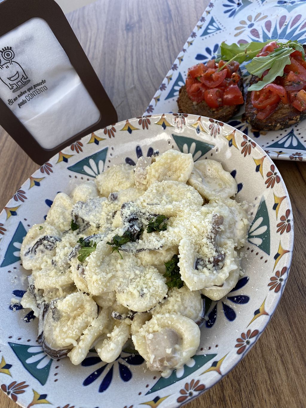 Pizza, bruschetta and lasagne. We were way too full to eat it all haha