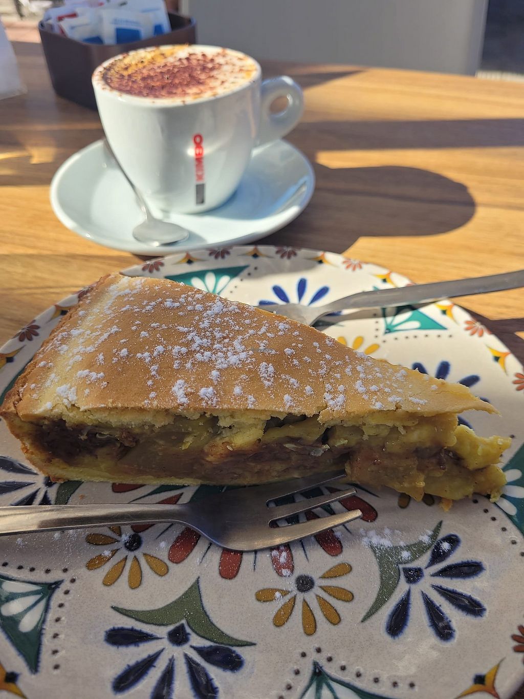 We had the zucchini starter which had delicious vegan green pesto in it and for mains, the seitan roll and aubergine parmigiana. Both were lovely and had so much flavour. The parmigiana especially was incredible. Great coffee too, highly recommend this place!
