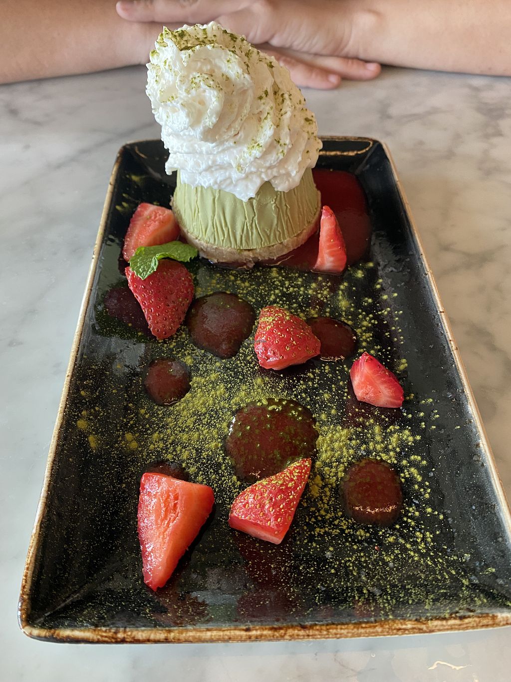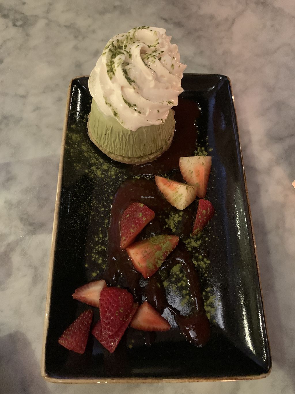 We started with the nachos which were fabulous, but a bit on the cold side. Still, very tasty for plant based and garnished so artfully. My husband had the mushroom Philly sandwich with a red sauce. It looked and tasted outstanding! The portabella mushrooms were sliced to mock pieces of beef and were in a delectable vegan gravy...sublime! We were both bowled over by the Caesar salad. We skipped the kale and got romaine only. I don't think I've ever had better romaine...the leaves were like butter (so fresh and choice that they almost tasted like Boston lettuce). The Caesar dressing was incredible...creamy without being too oily. I hate vinegar and thankfully this dressing didn't have that going on. It was topped with ground up pumpkin seeds and tasty croutons... amazing!! For dessert I had the matcha cheesecake which did not disappoint. It had coconut whipped cream with a fresh strawberry compote.