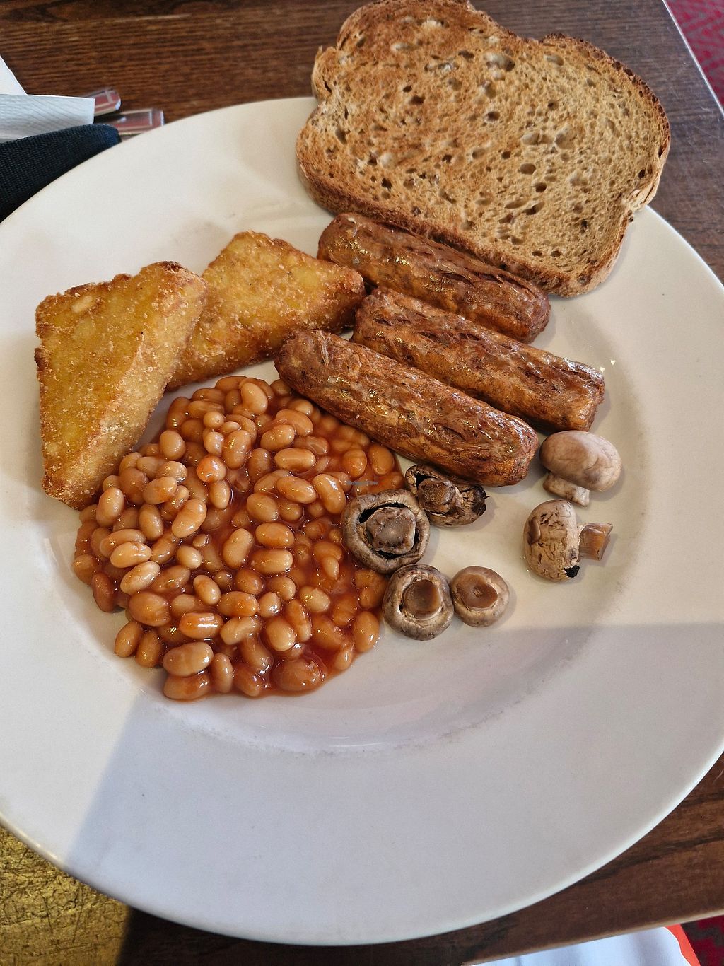 We ordered a vegan sausage butty for 2.99 and a plant based breakfast for 4.99. You can also order free tap water via the QR Code on the tables. Both breakfasts we decent, especially for the price.