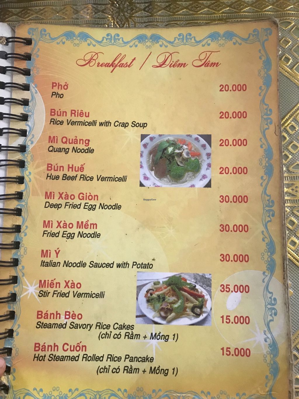 We went there for breakfast. Normally we wanted to go to a vegetarian restaurant next door but this one looks much better and the stuff was really friendly. The menu card on happy cow looks a bit not so clean but I a m so happy that we went there. The restaurant is really clean (cleaner than all the other cheap vegetarian restaurants) and the food is amazing. Of course there are more fancy restaurants like row and goom but this one is cheap and good too. We only paid 20.000 for our noodle soup with a lot of salat. You should try