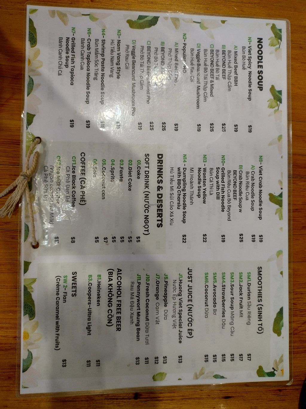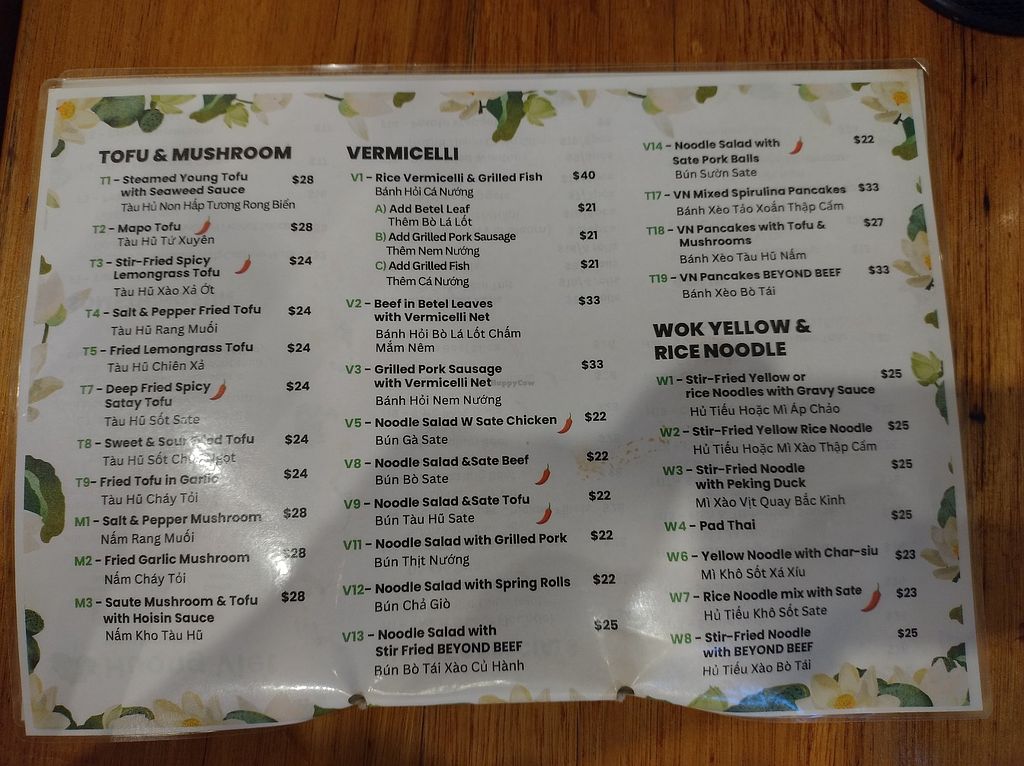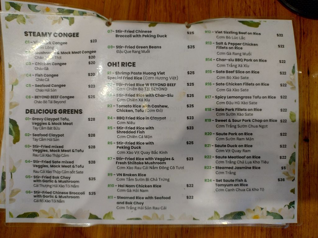 Menu as of 2026-01