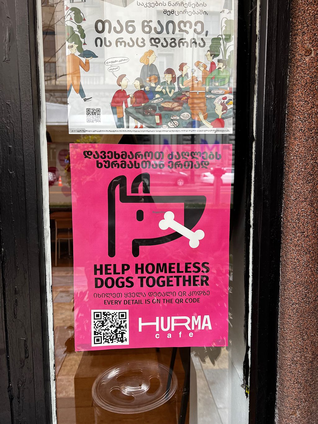 Read moreI liked that they had dog bowls with kibble and water outside as there are lots of strays in Tbilisi. They also had a poster up for helping strays.
