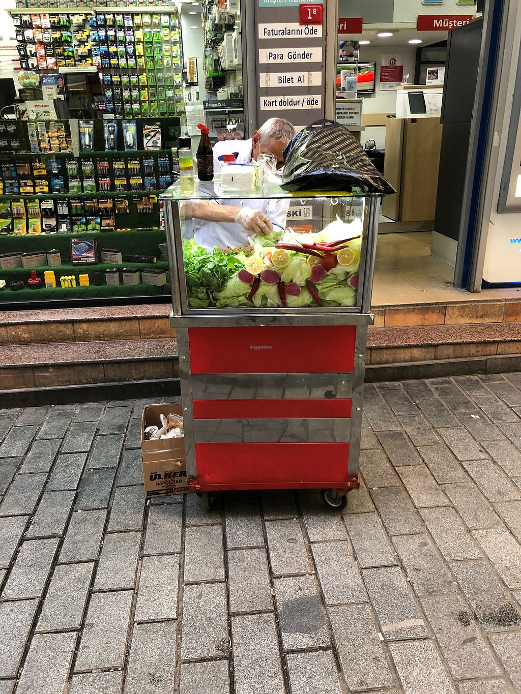 Clean and small vegetarian stand on a corner. Located in front of Omer Abed Han, usually a street or two behind the Karakoy Free stop, across from Hilal Doviz Currency Exchange. Everything is made fresh daily. Try the wrap with ingredients that you choose. Reported closed, Aug 2021.