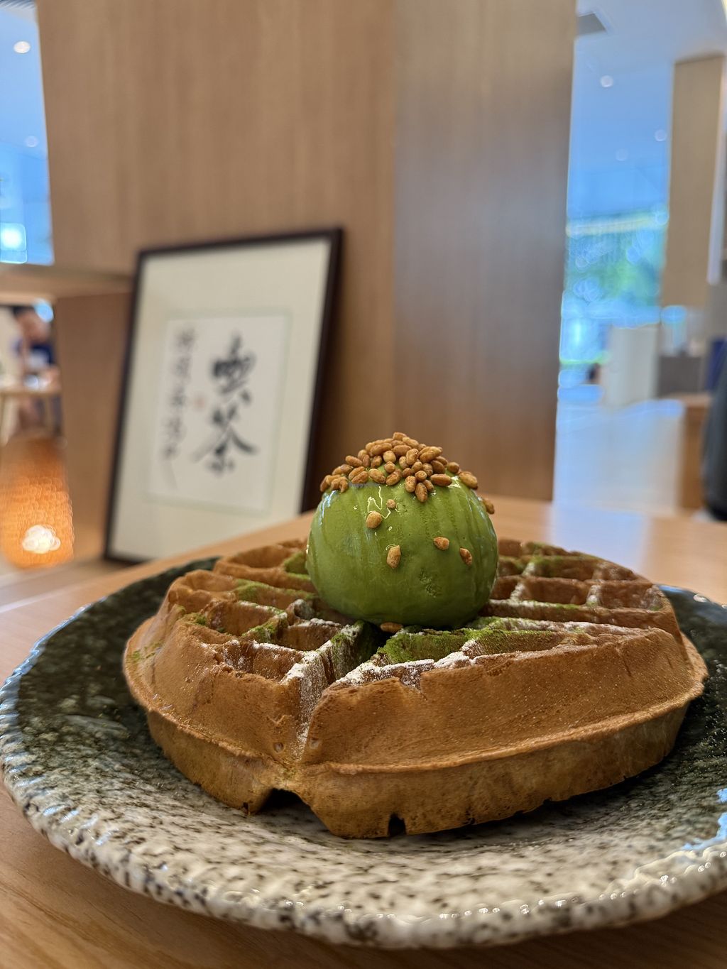 Love the matcha and hojicha gelato to pair with the vegan waffle