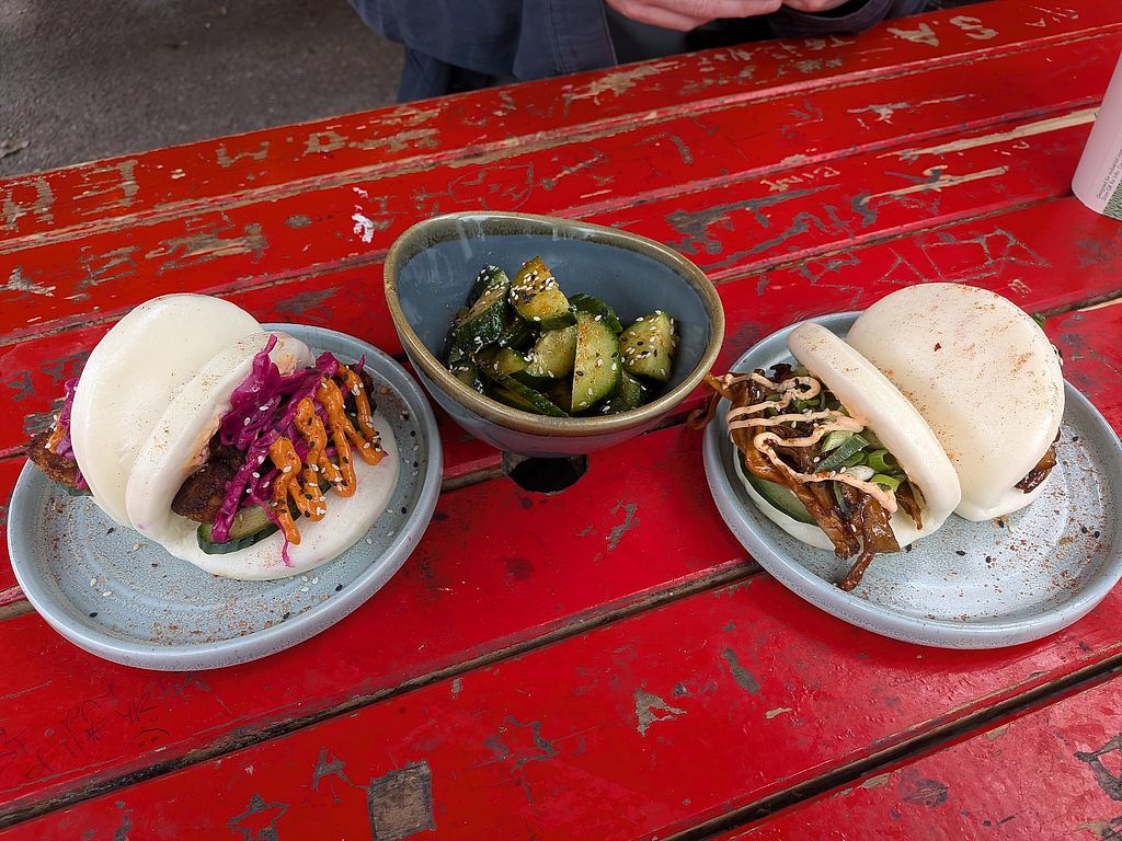 I love this place. It's got such a cool and relaxed vibe and is unpretentious and welcoming. There are some good vegan options, not all of the faux meat are vegan, the burger and hot dog are not which we originally chose but changing to a vegan option was not a problem. I had a wrap with 'chicken' and avocado which was sensational, one of, if not the best wraps I have ever had. The 'chicken' was succulent in the middle and crispy on the edges, I didn't want the experience to end, it was so good. We were lucky enough to visit on a sunny day and enjoyed relaxing outside. If you don't live close by and are staying in Leeds City centre, don't be put off by the location which isn't in the centre, it's situated in a nice area and is well worth the short journey by car or bus.