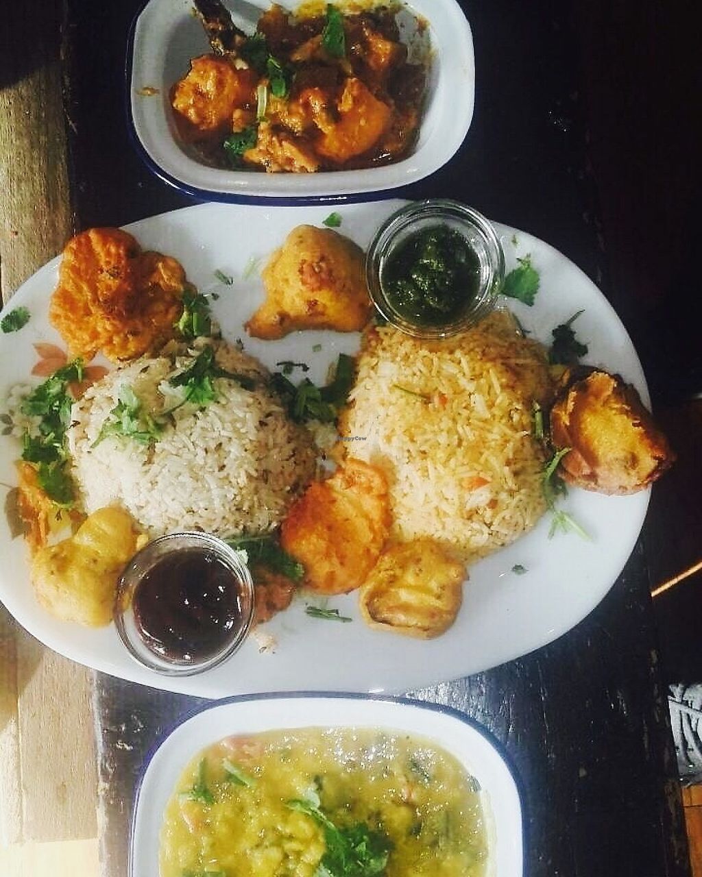 Delicious home cooking at its best! Amazing Indian dishes of pakoras and African inspired curries. Also vegan tofu burgers, pulled 'pork' and other animal loving ingredients. Nom nom nom!! Left feeling full and satisfied. Highly recommend. Delicious x