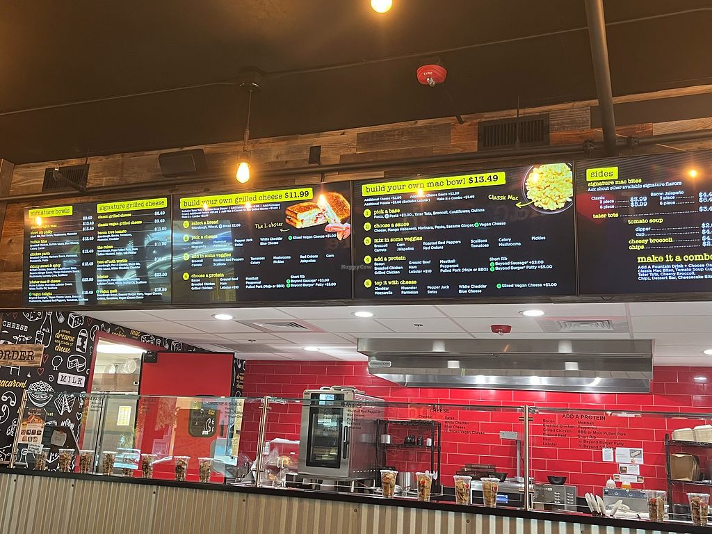 Serves meat, vegan options available. Mac and cheese franchise operating restaurants in several states. Menu offers a few vegan creations as well as build your own. Vegan offerings include a mac & cheese bowl, a patty melt, and a grilled cheese sandwich. Build-your-own includes veggies, vegan cheese sauce and sliced cheese as well as beyond sausage, patty, and crumbles. Open Mon-Thu 11:00am-9:00pm, Fri-Sat 11:00am-11:00pm, Sun 11:00am-9:00pm.