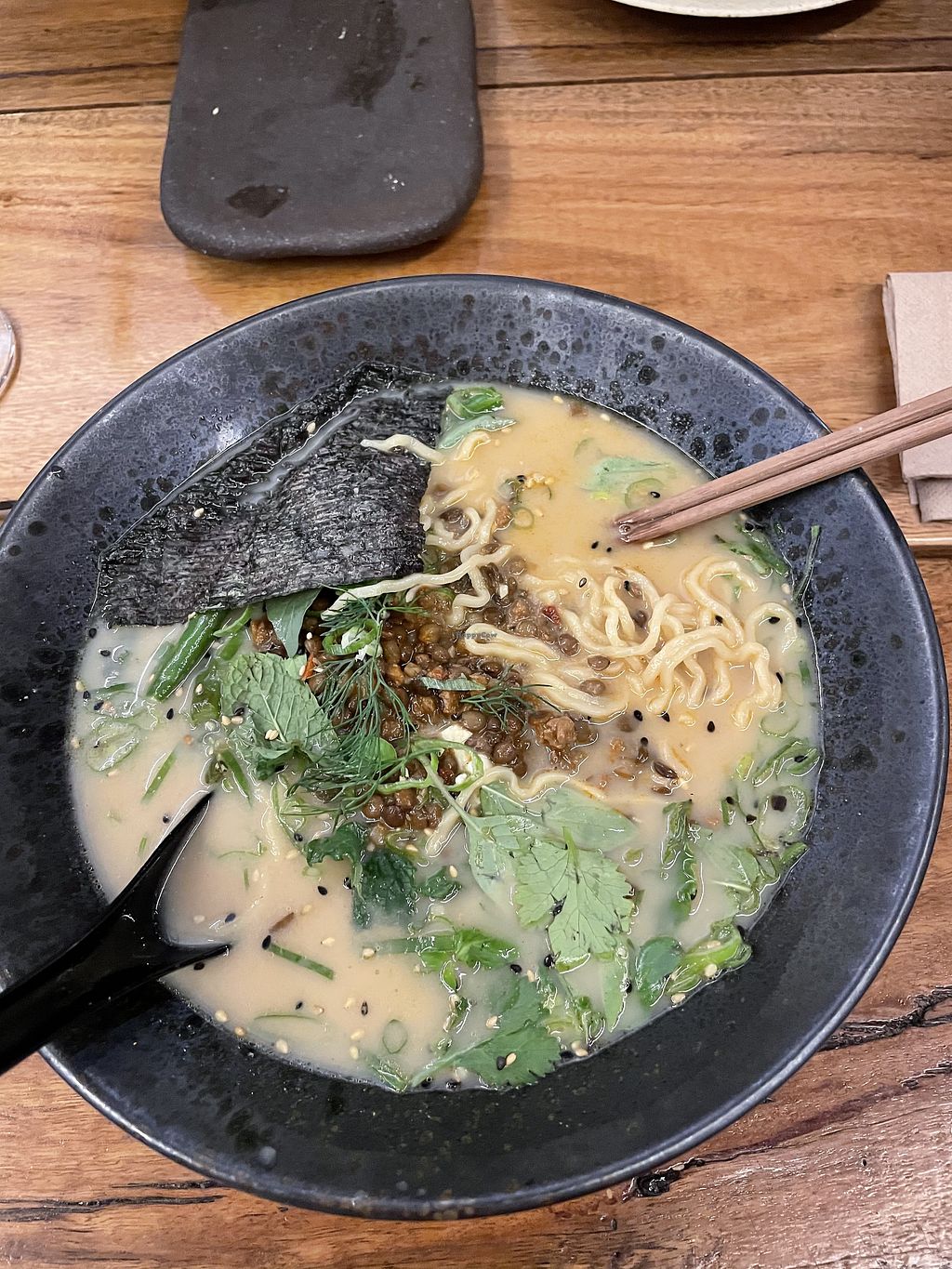 Good food, only vegan ramen around that offers a variety of dishes. Bit pricey yet that’s what common for the area. Probably would need an appetiser to go along with the ramen!