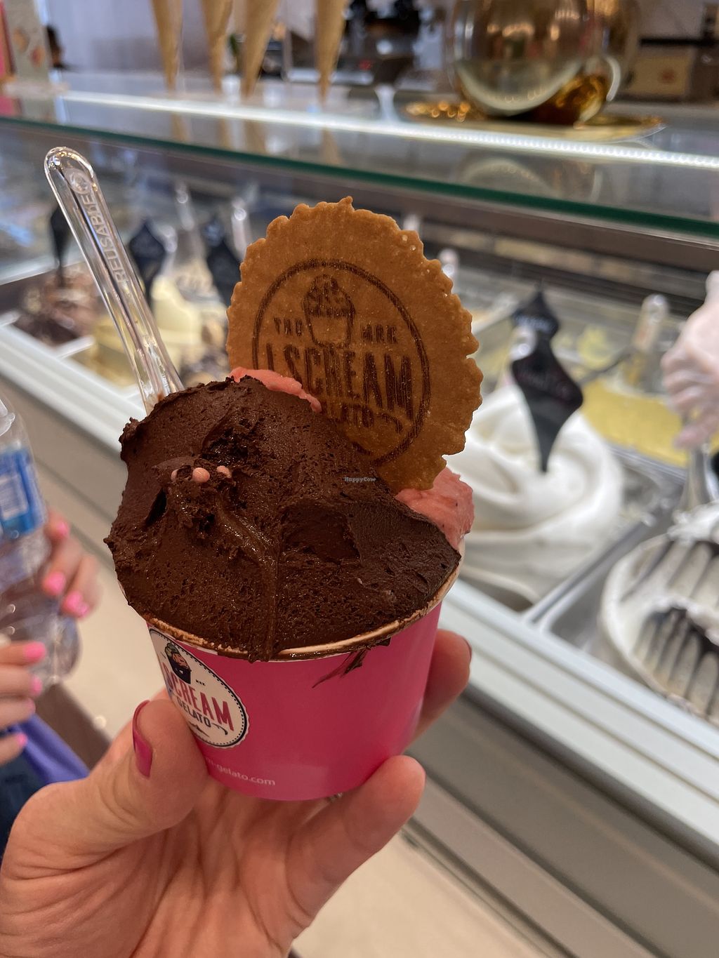We were here on a mommy/daughter trip and we came here both days we were in Miami Beach. The vegan chocolate and strawberry gelato was so delicious. I love that the wafer was also vegan.