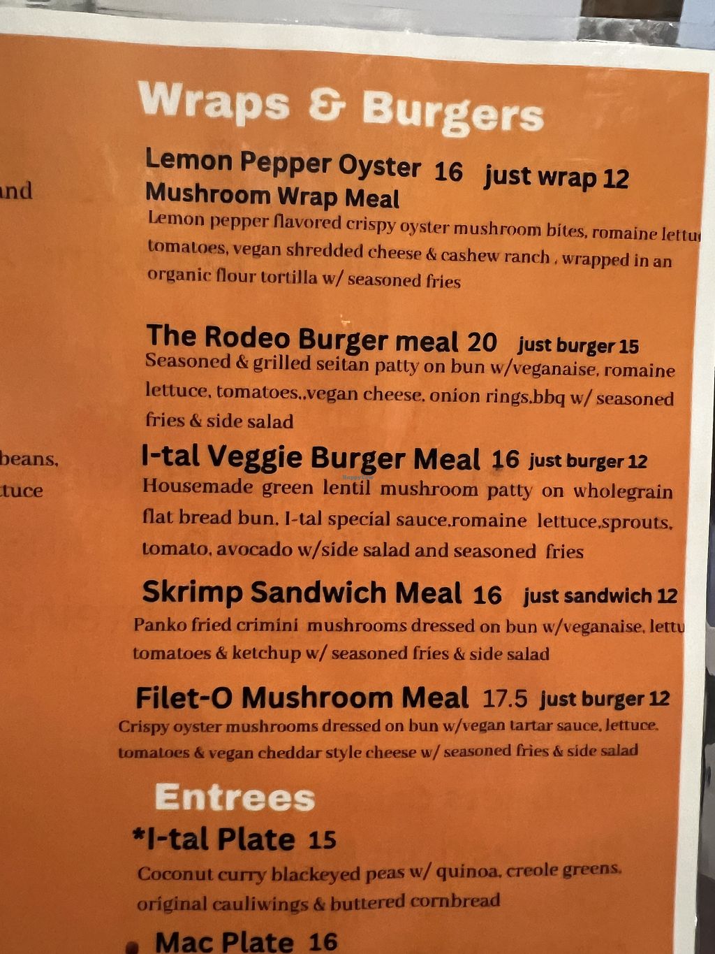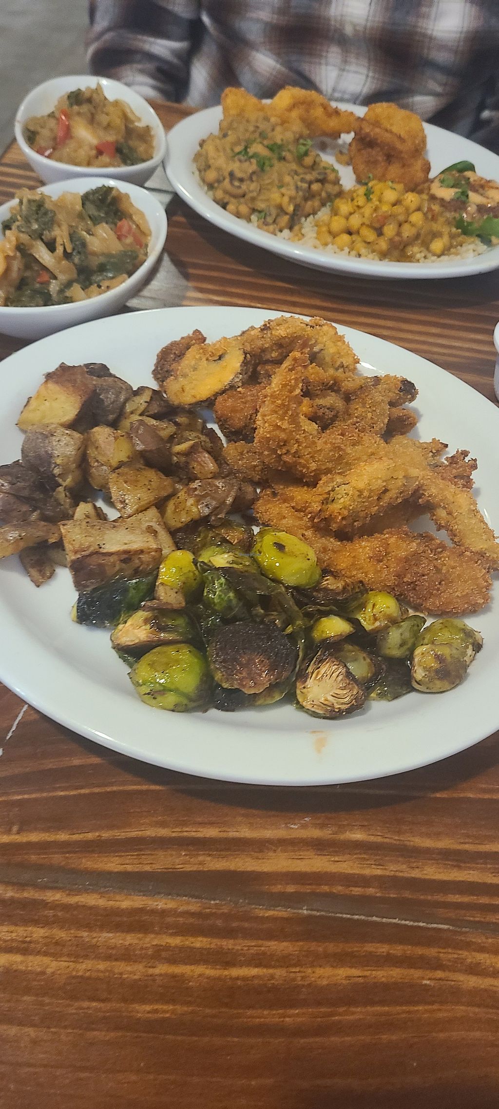 I-tal plate & mac and cheese plate (subbed for mushrooms)