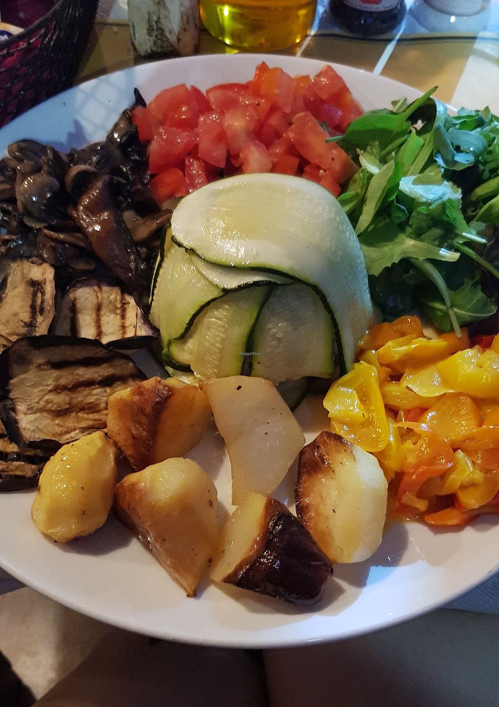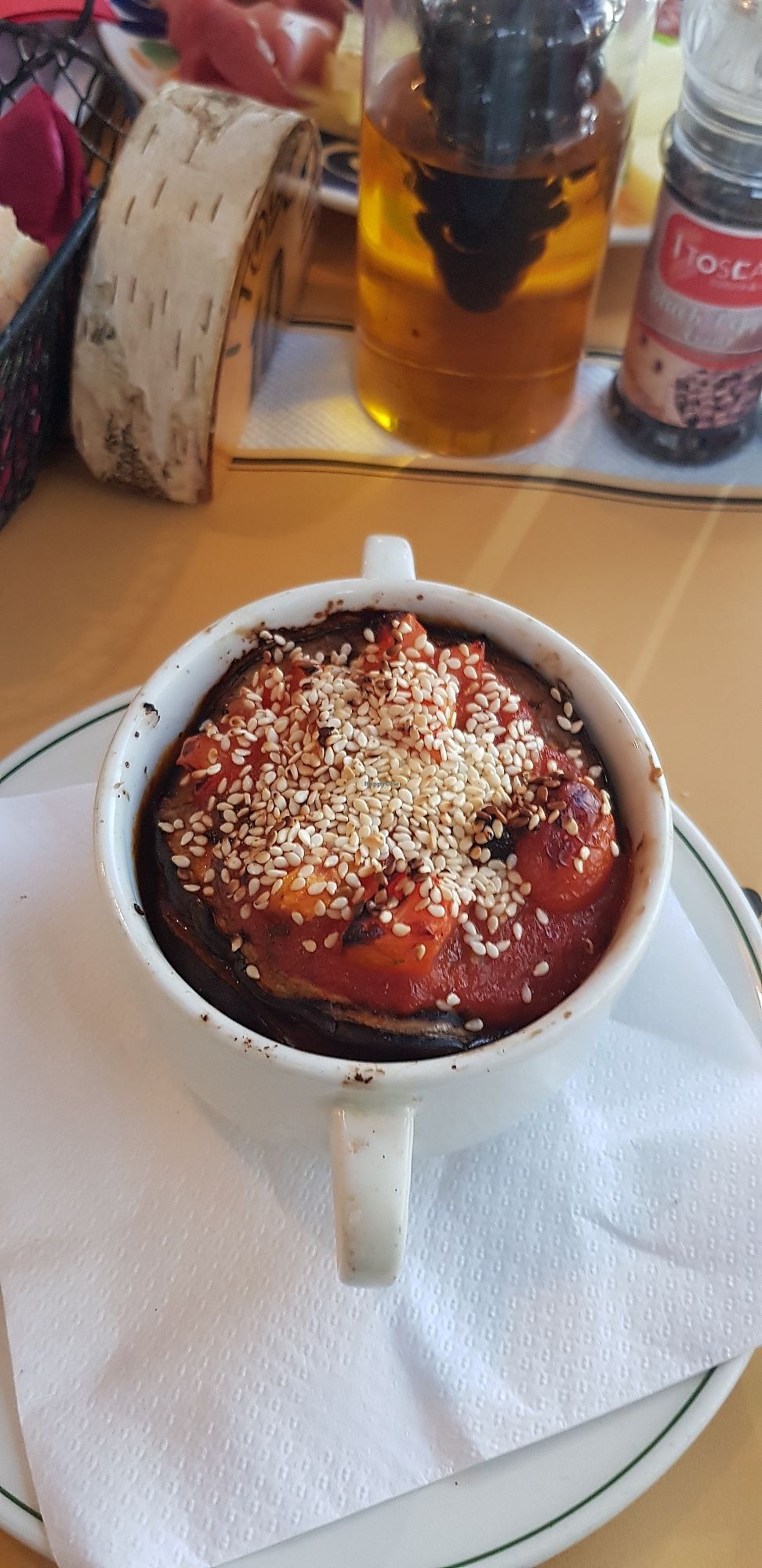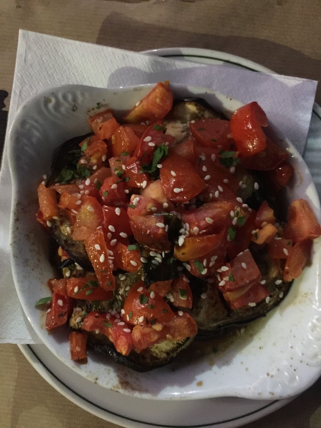 Starter: parmigiani vegana. (Grilled eggplant and tomato dish)