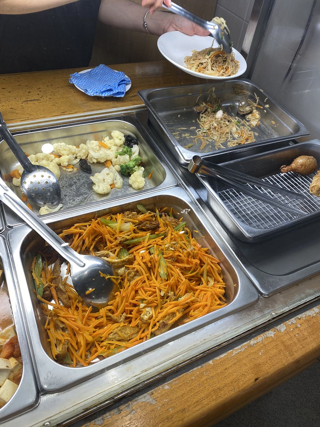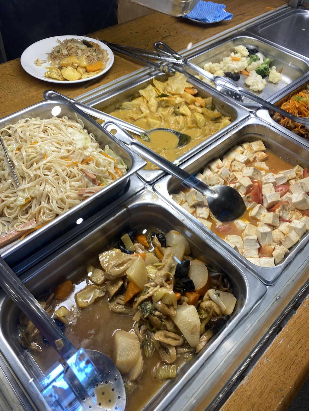 Pros: 100% plant based, Plenty of seating, Buffet style