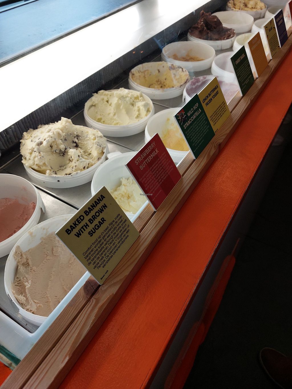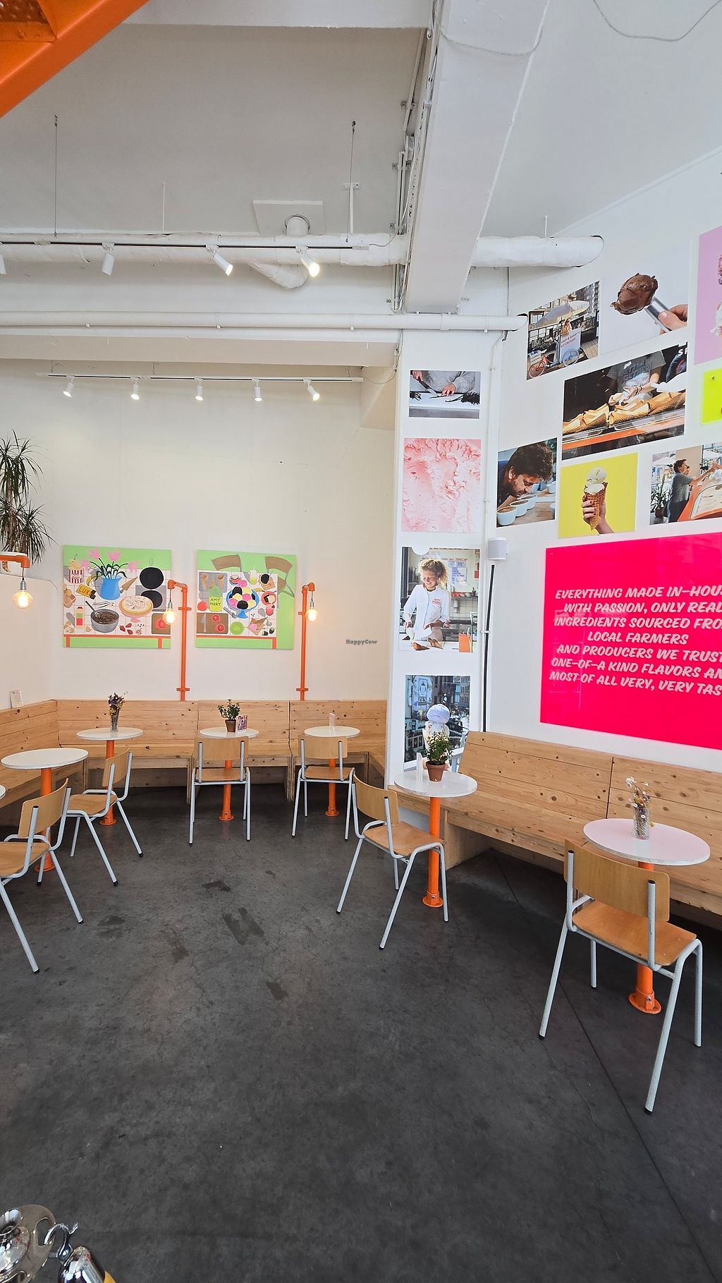 Ice cream shop with vegan flavors such as matcha coconut and banana split. Open Mon-Sun 11:00-22:00.