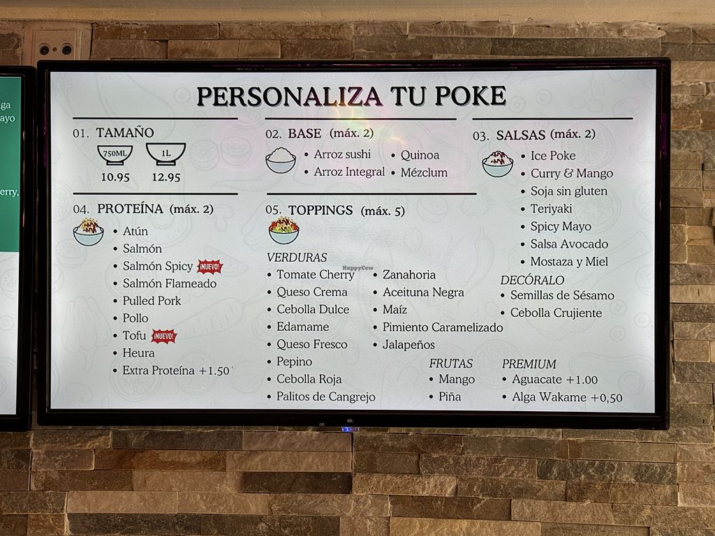Sitio de Poke con opciones veganas y vegetarianas. Puedes hacer tu poke con varias opciones y proteína de Heura. Tienen una opción de Poke Vegano ya creada también por si no te apetece pensar mucho. El chico muy majo!