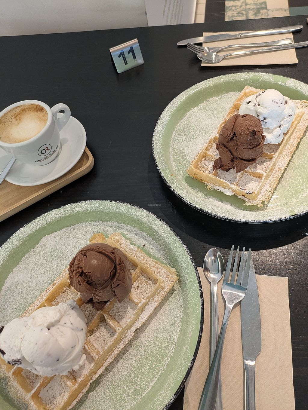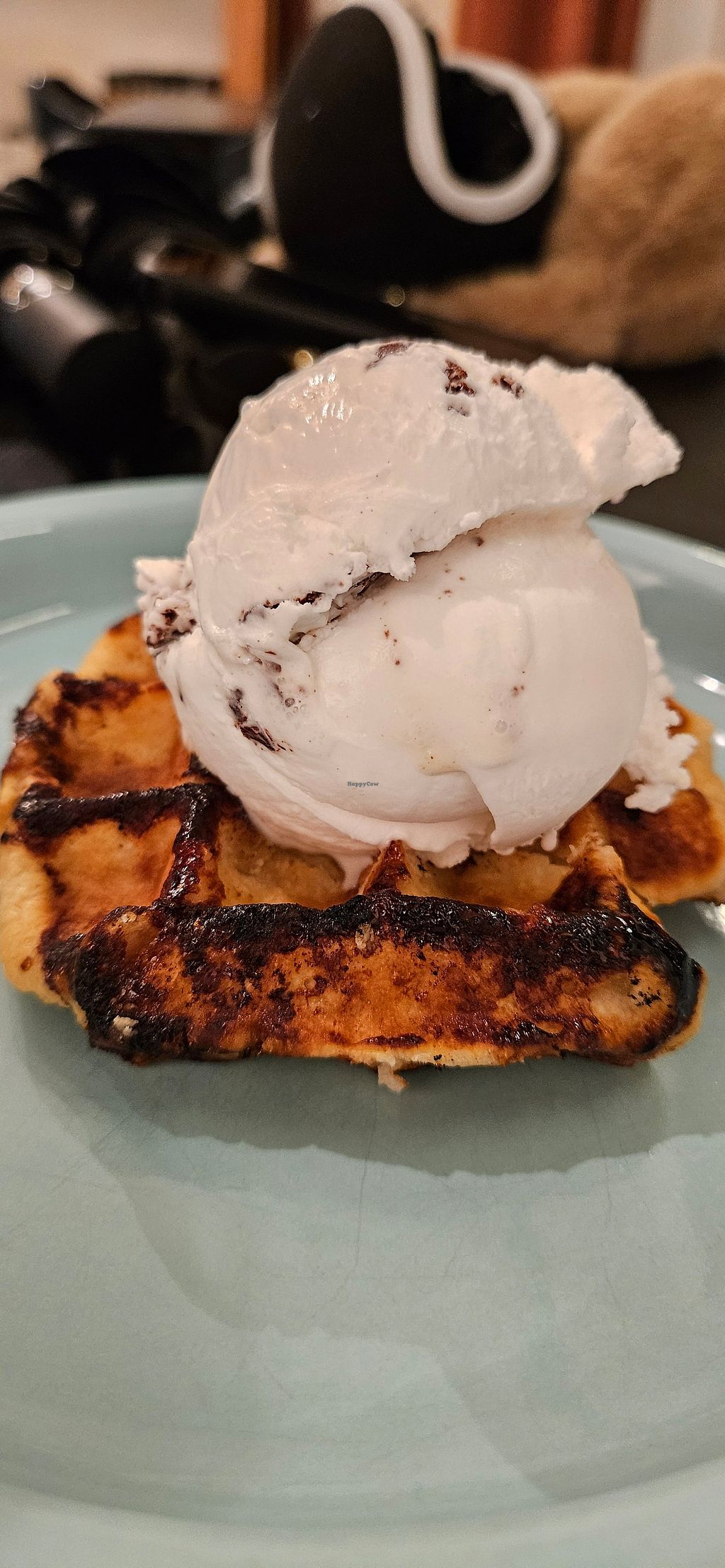 Heerlijk bolletjes ijs op een vegan glutenvrije Brusselse wafel! Met een uitstekende koffie erbij. Smaakte Heerlijk en de eigenaresse is zeer vriendelijk. Kleine ruimte met weinig zitplaatsen binnen, maar je kunt ook buiten zitten.