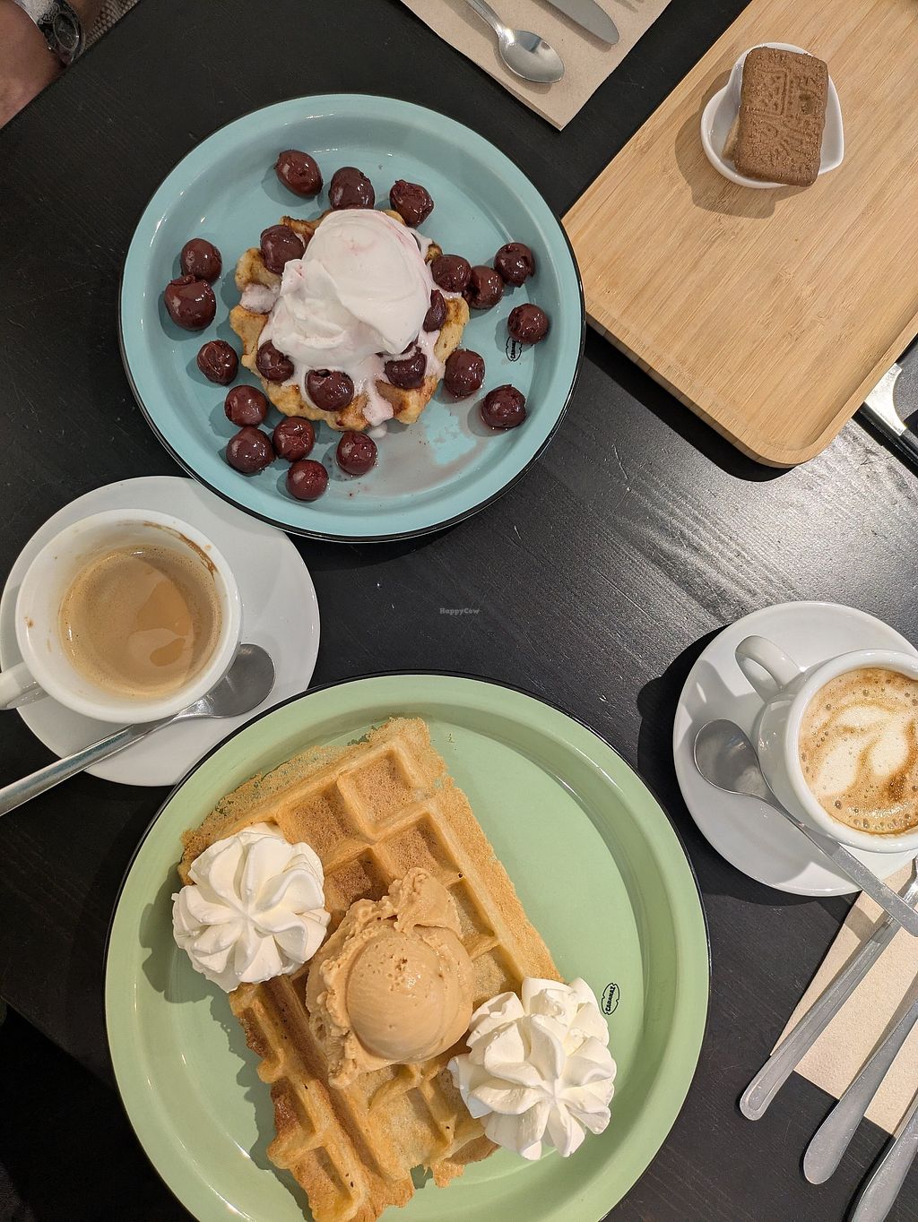 A 100% vegan place. I've tried the Luikse waffle and affogato and it was perfect. The waffle was fresh and a good size, the ice cream in the affogato really tasted like an ice cream with a very silky texture. If you are in Antwerpen please come and take a visit the owners are a very sweet couple (a Belgium womanand a Portuguese man) and they are going to welcome you with a very big smile!