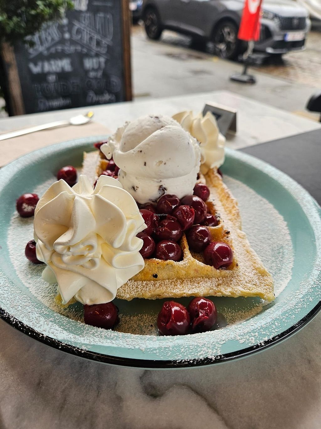 Wat een lekkere Brusselse wafel met ijs! De lekkerste dat ik al heb gegeten. Heel vriendelijk en alles is Vegan. Top!!