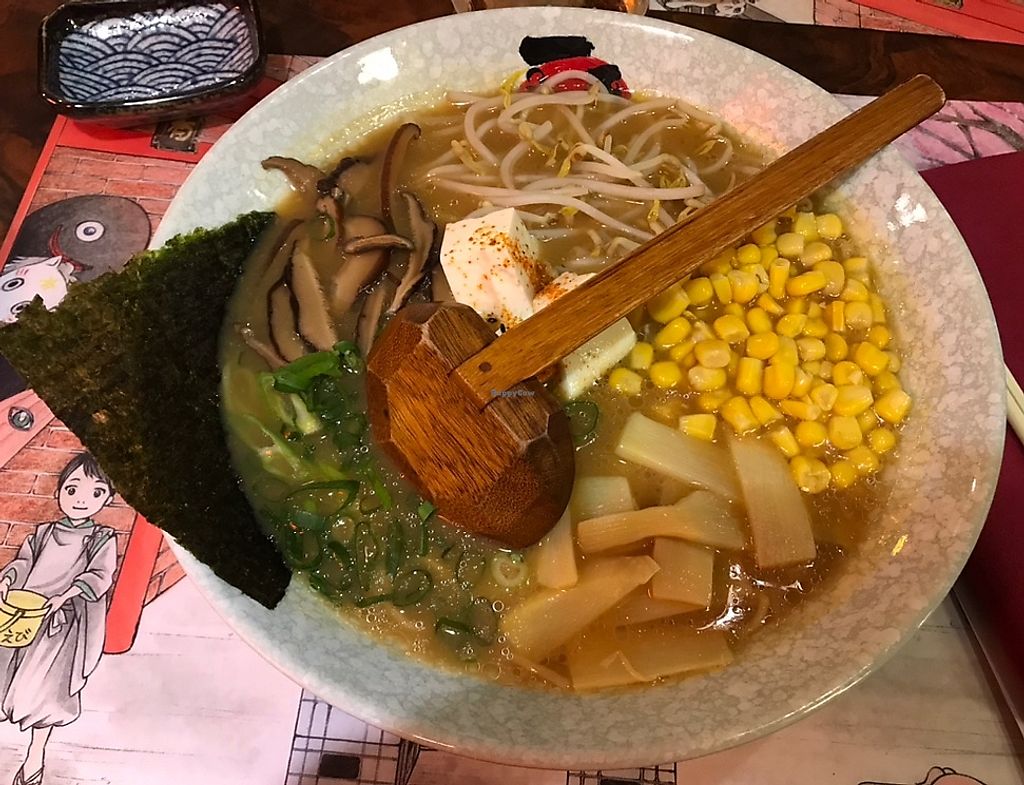 Serves meat, vegan options available. Japanese restaurant serving vegan ramen made with vegetable broth (ramen vegeta), tofu, mushrooms, corn, soy sprout and spices. Also offers vegan dumplings, edamame and other sides. Removed July 2024: Limited vegan options.