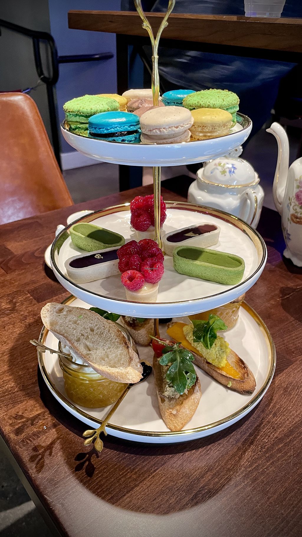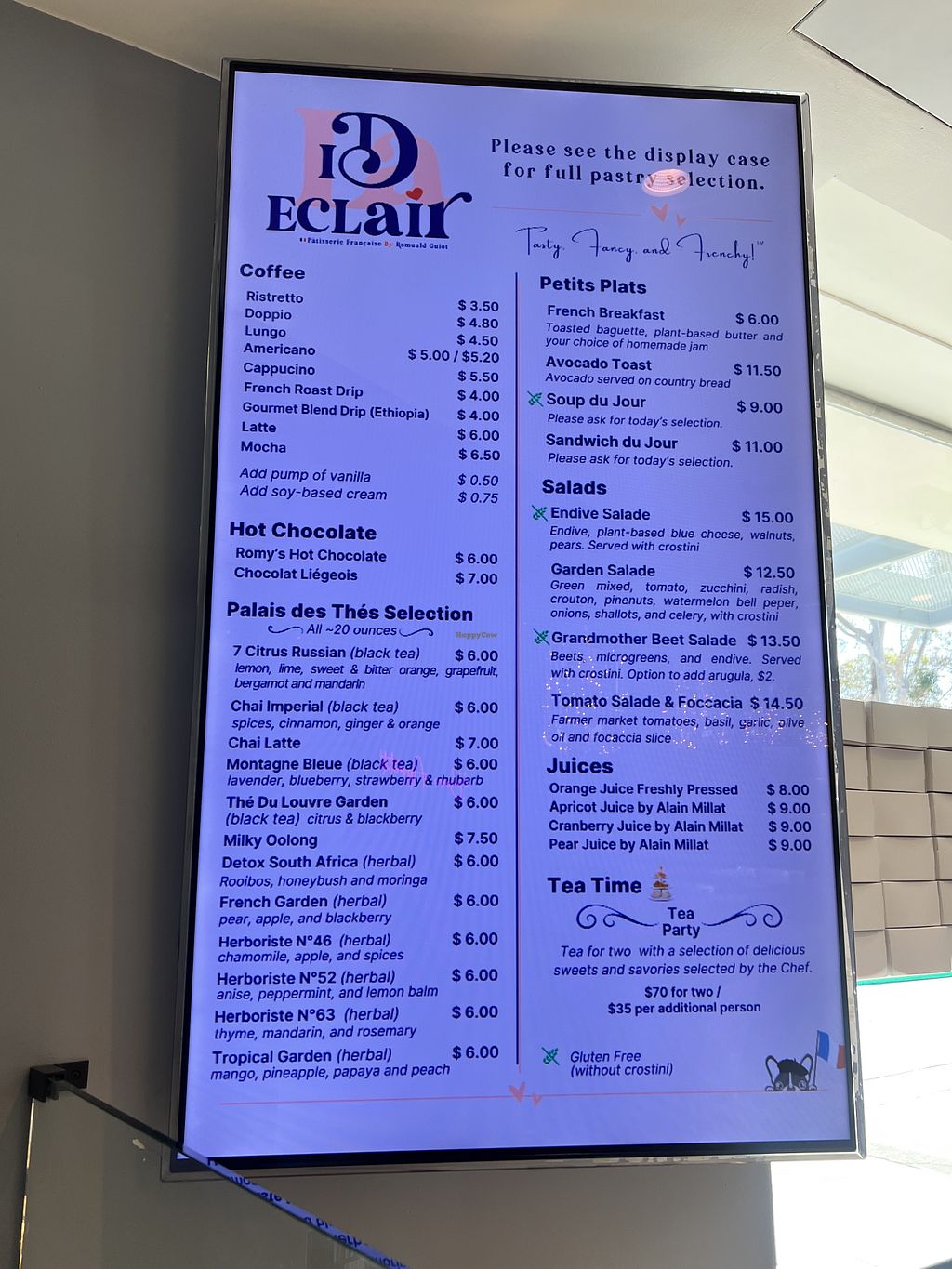 I love pastries and it isn’t always easy to find vegan pastries that are also gluten free, but this spot has options! There are several tarts and other gluten free pastries. Lots of non gluten free options as well. Such gorgeous desserts, and such a cute spot in general! I also loved the teas and salads, very realistic vegan bleu cheese! Can’t wait to come back and try everything else on the menu, I would highly recommend the mixed fruit tart.