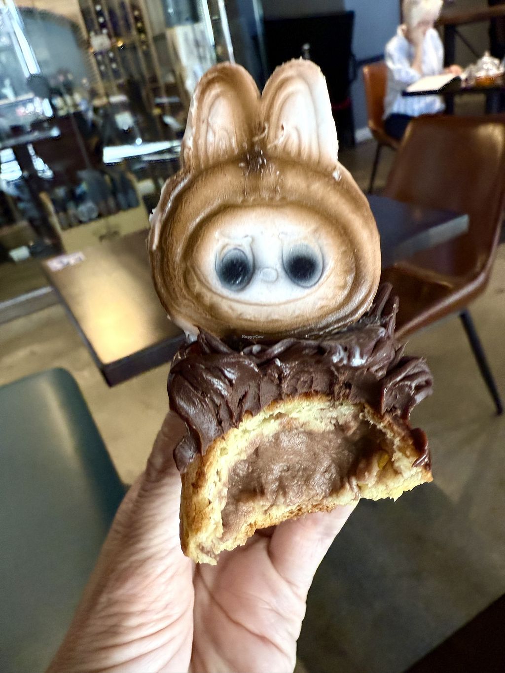 I loved the design of the place and the Paris Brest eclair was delicious a good experience for my first time trying an eclair, the chocolate almond cross was filled with cookie dough and was nice and crunchy, the palmier incredible, nothing was too sweet and good hospitality they serve other packed vegan items and their beet bread was incredible and fluffy