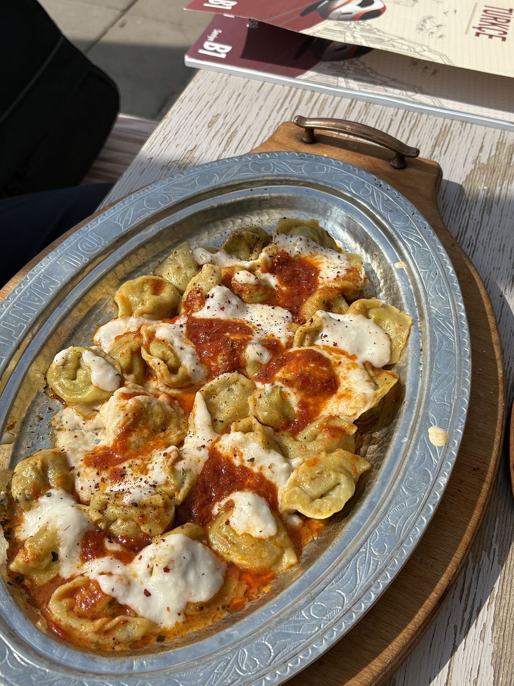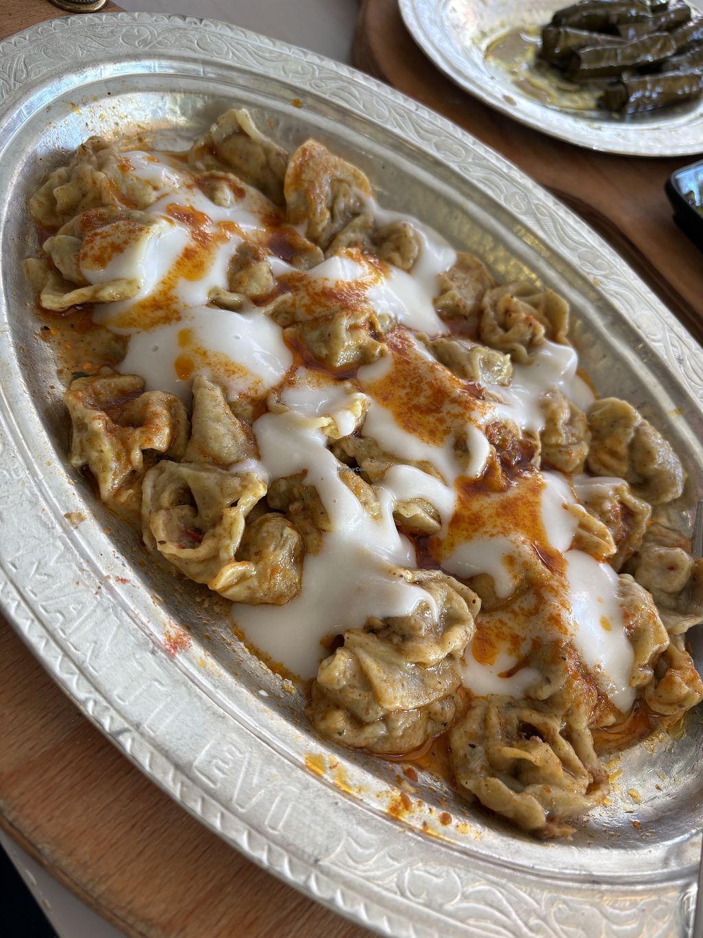 Vegan manti with garlic yogurt
