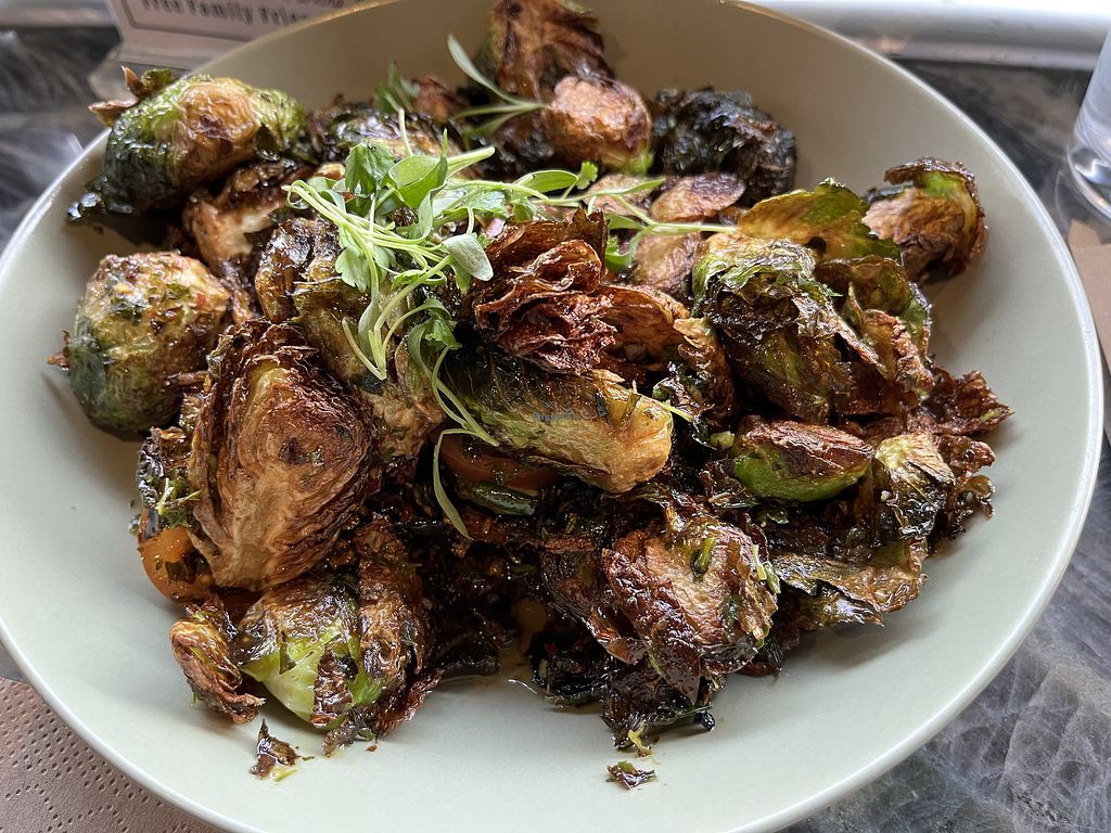 Brussel sprouts and tomatoes with chimichurri