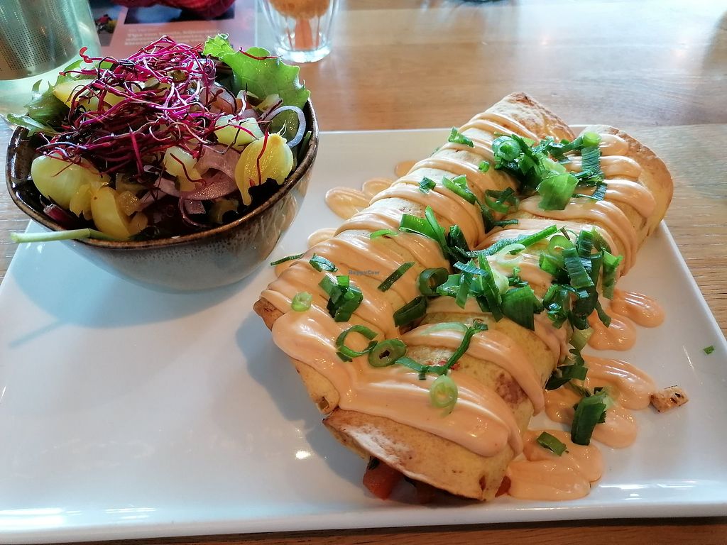Leuk restaurant aan het water. Mooie stijl interieur , goede bediening. We hadden drie vegan gerechten genomen: wraps, flatbread en kroketten. Erg lekker allemaal! Buiten het restaurant is een leuke speeltuin voor kinderen en je kunt er goed je hond uit laten. Honden zijn ook toegestaan in het restaurant