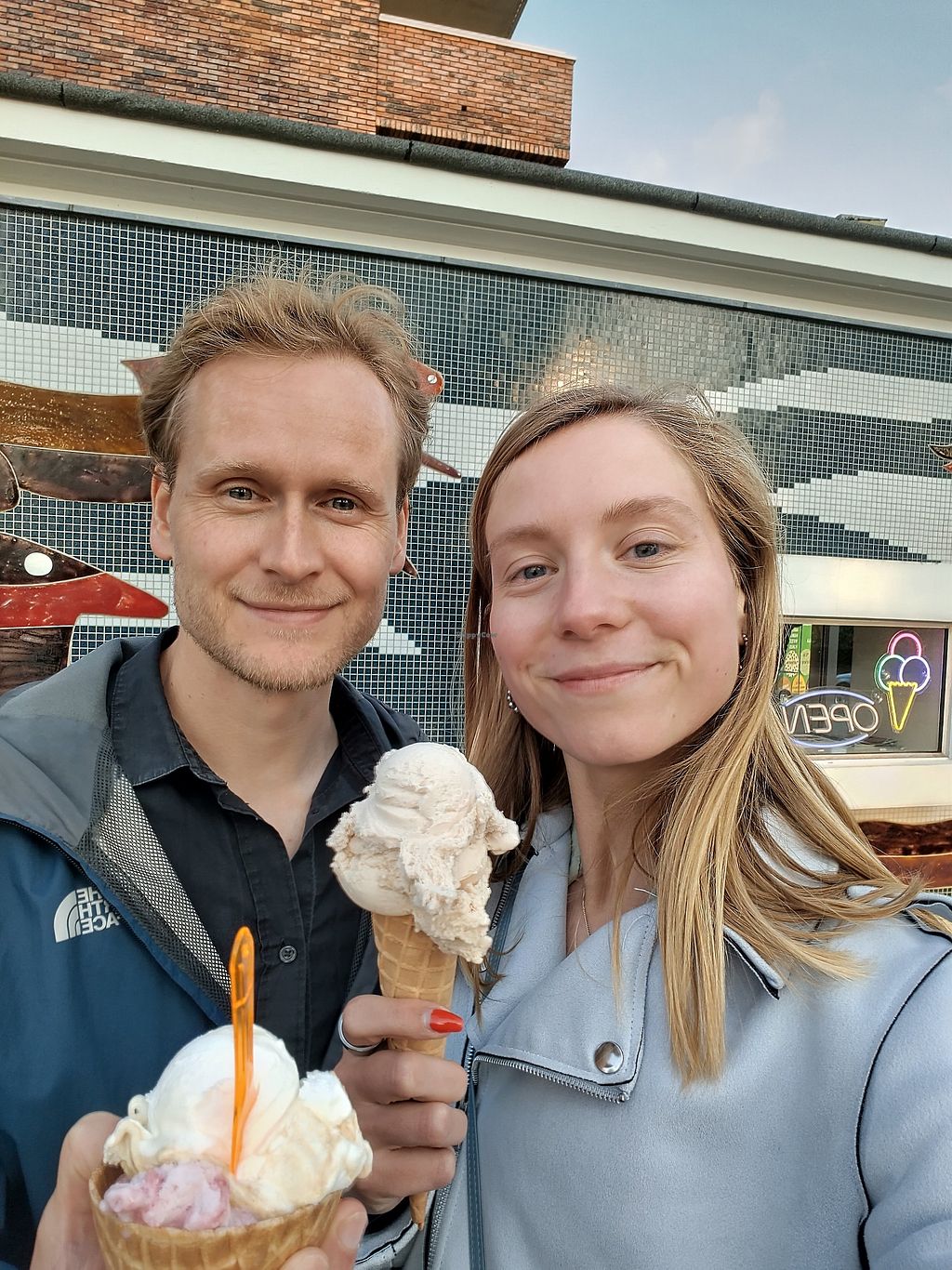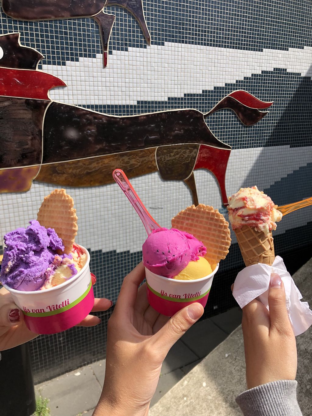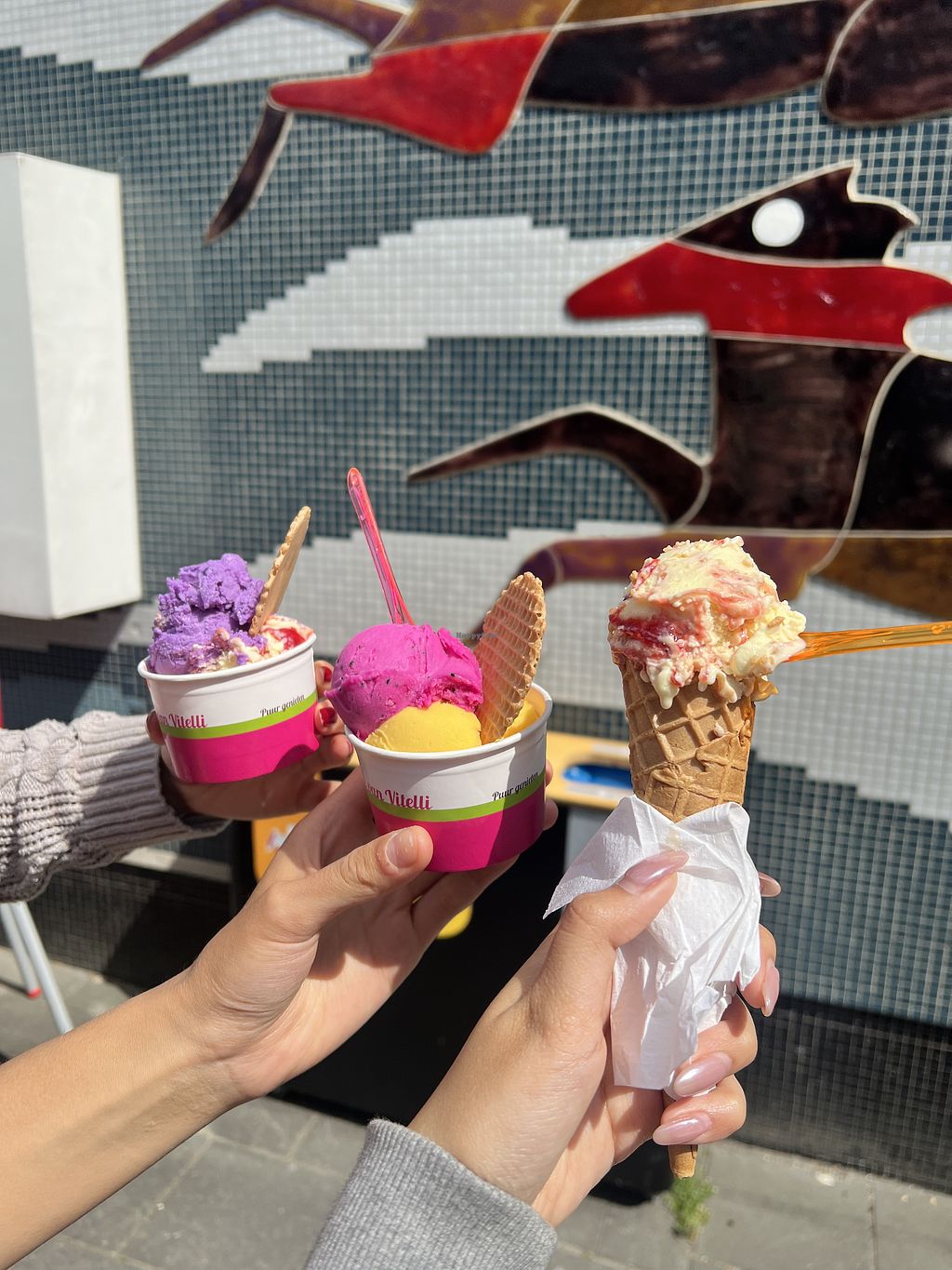 Chocolade en kers, vlierbloesem en straciatella met slagroom