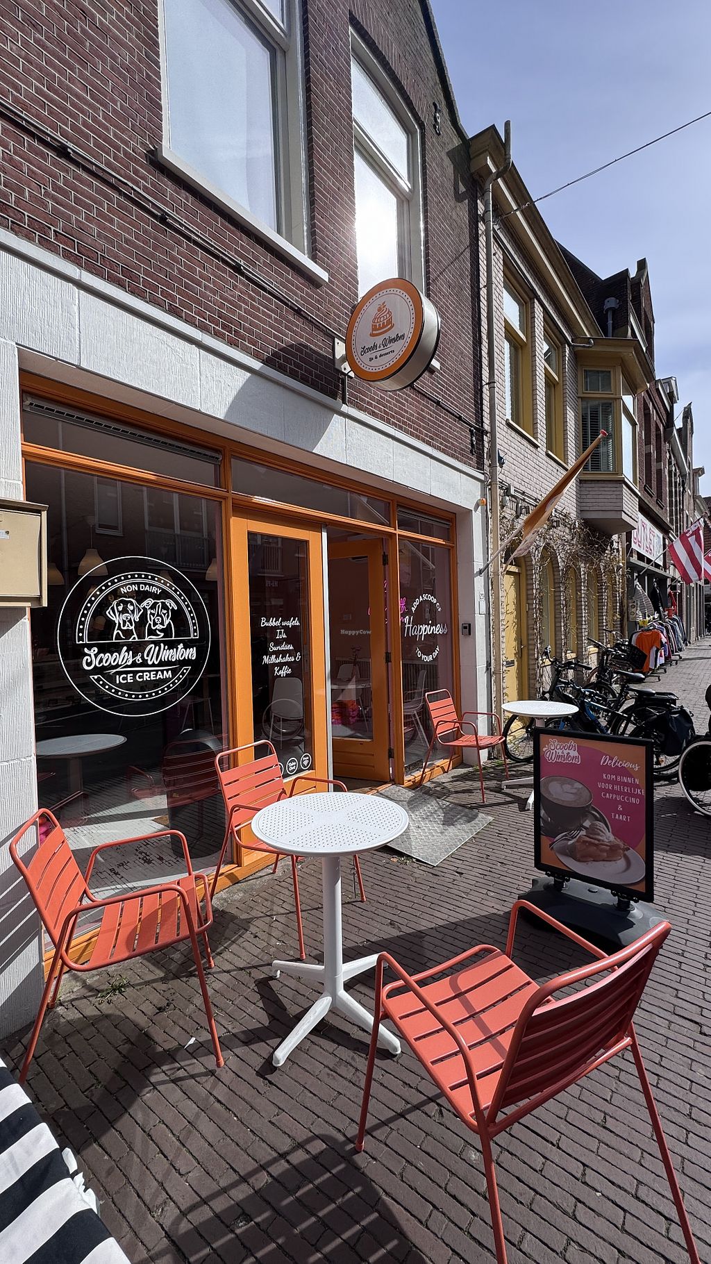 Frisse nieuwe ijssalon, de enige veganistische in Nederland volgens de gastvrije eigenaresse. Op de volle melk voor gasten die geen plant-based melk in hun koffie willen na dan 🧐.