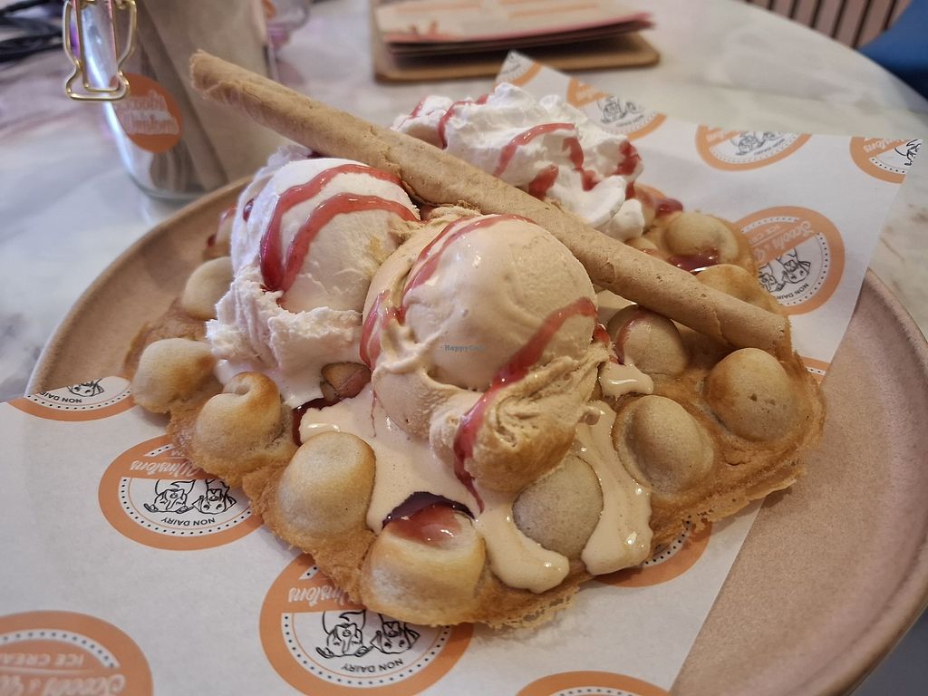 Great all vegan ice cream parlor 😋 Selling bubble wrap ice cream, milkshakes, cones, dubai chocolate bar and even ice cream for dogs 🐶