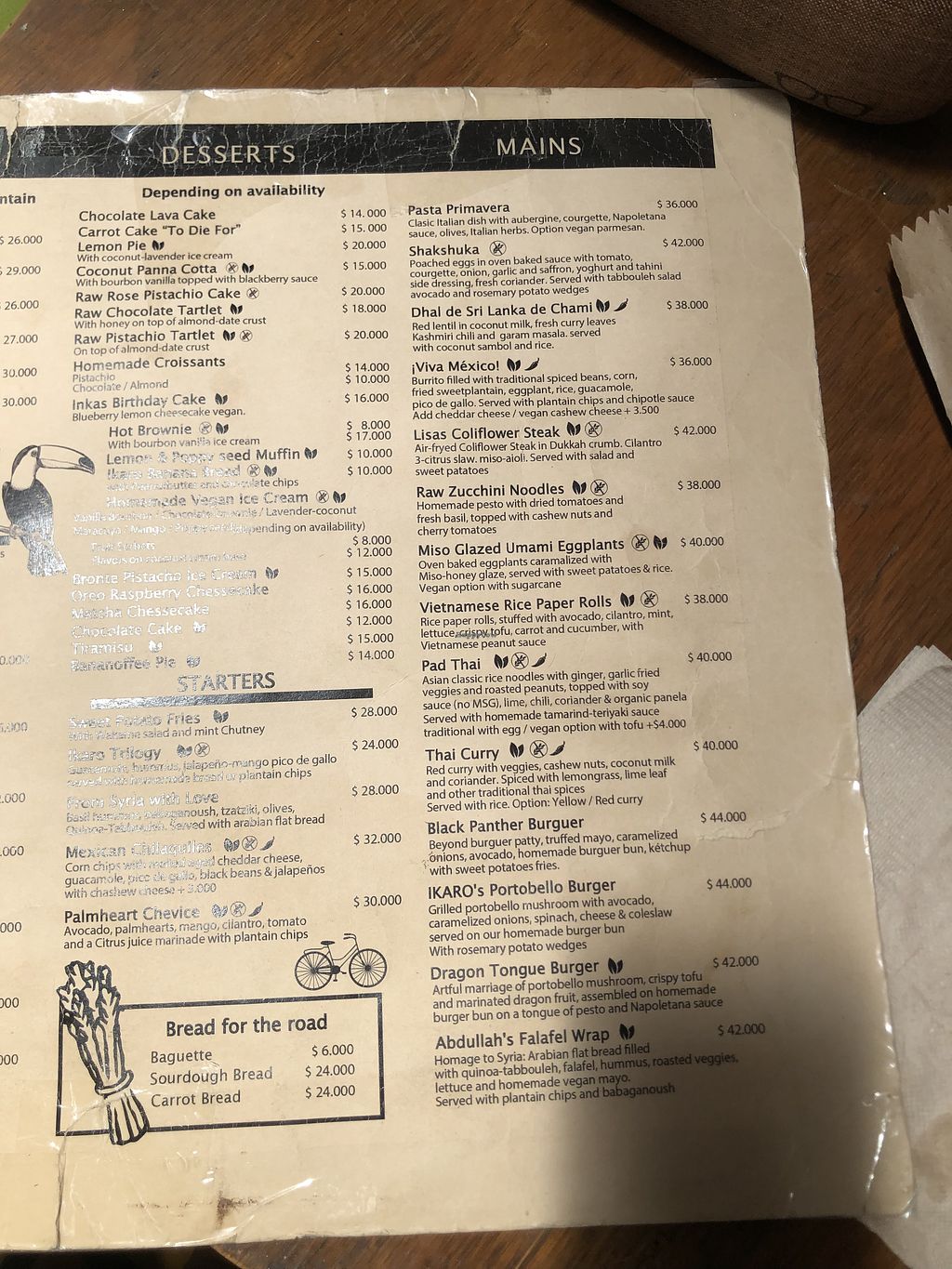 Dinner menu was good. A lot of vegan options on the menu but does not mean they had everything on the menu.